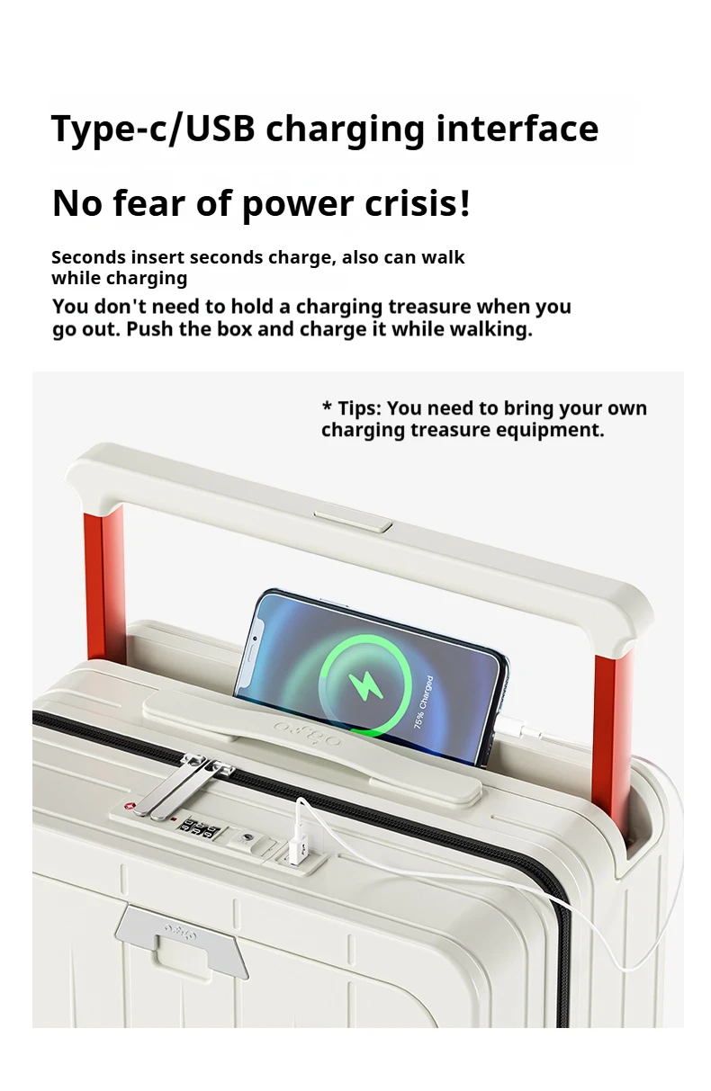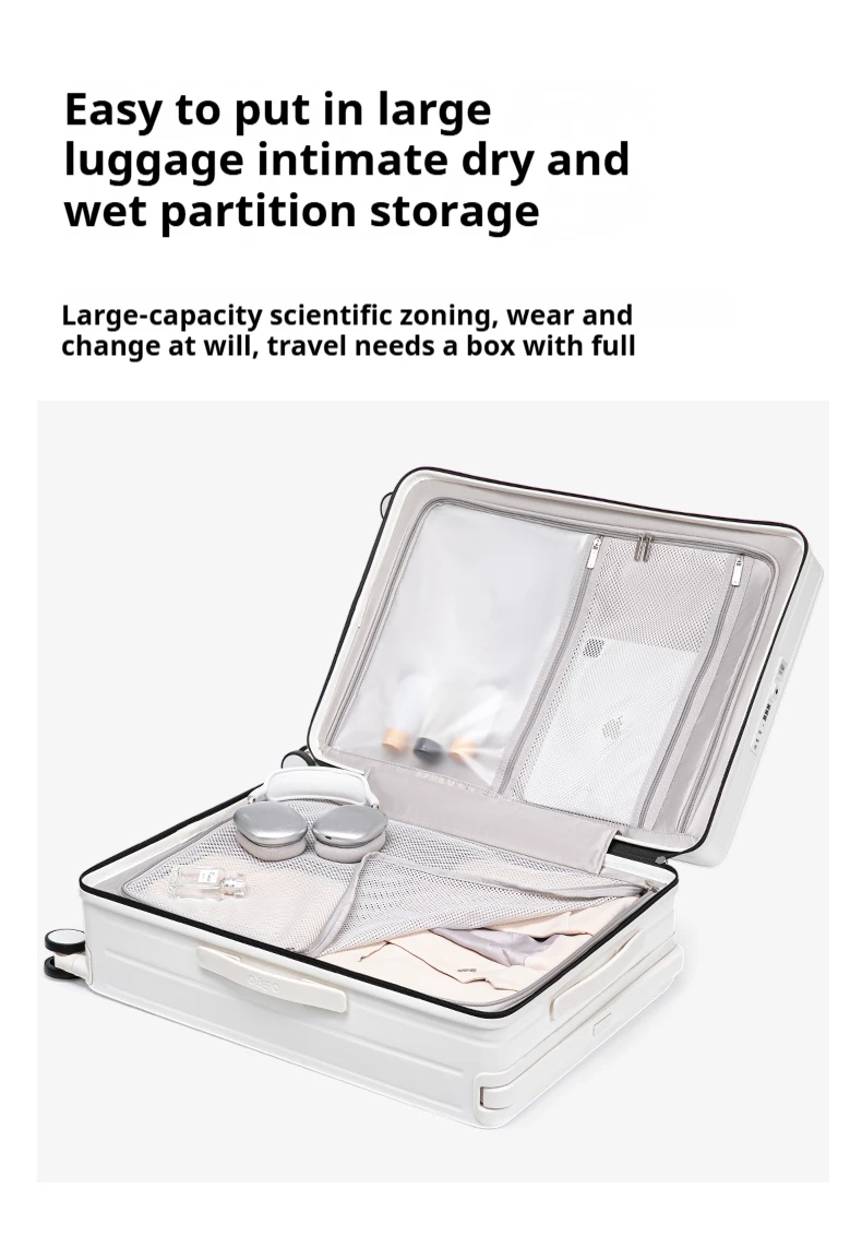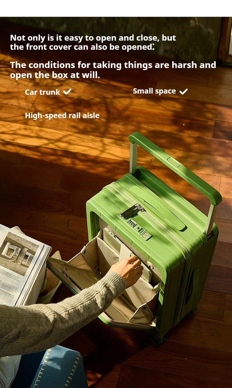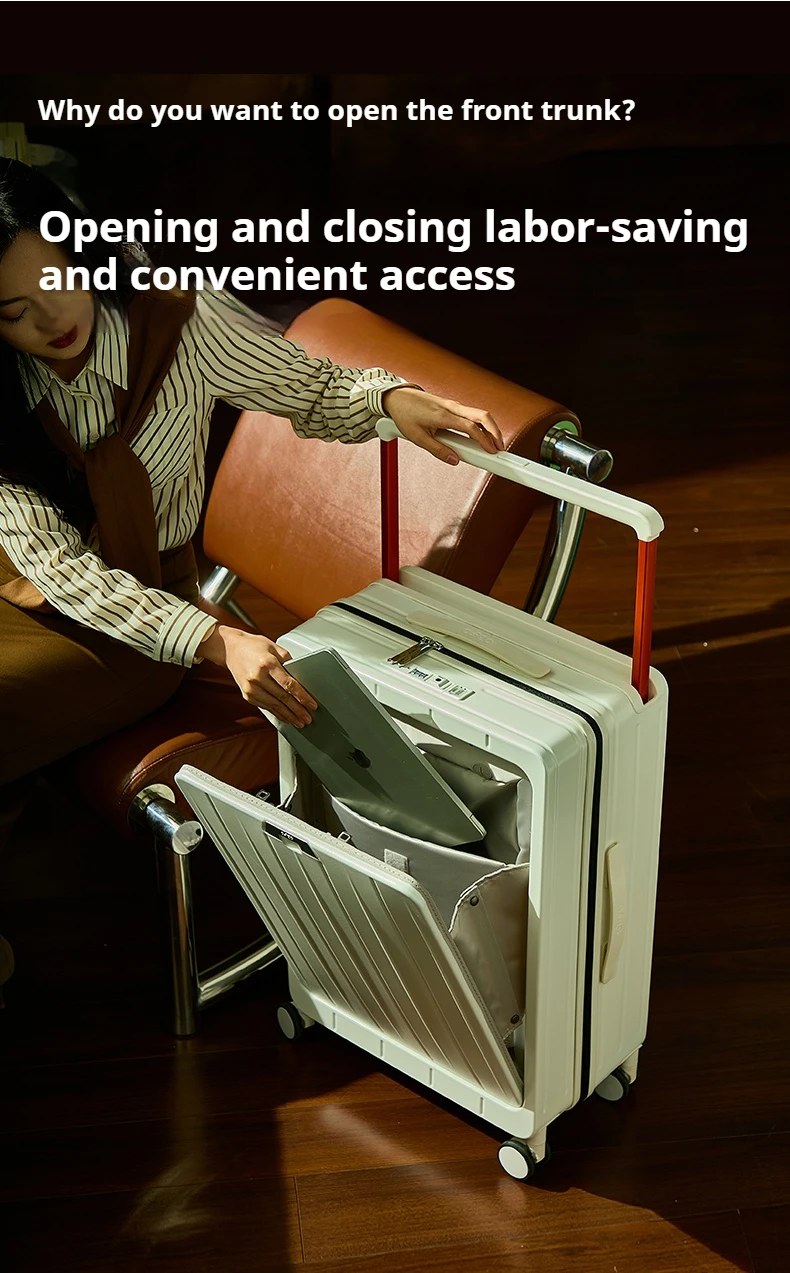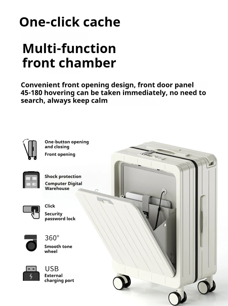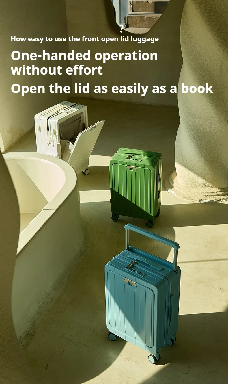 L544 PC Material Luggage Suitcase 20/24 Inch Carry-On Cabin Trolley Case with Wide Handle Front Open Cover for Travel for Men & Women