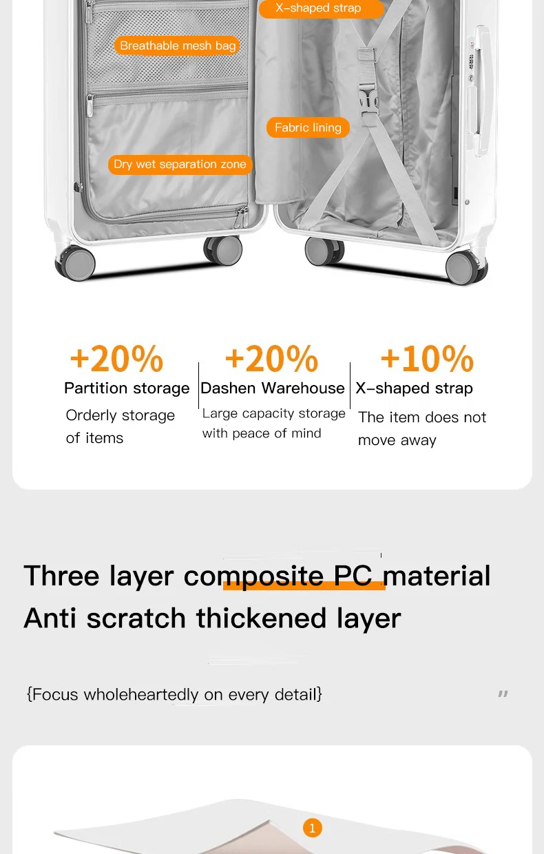 L643 SUSHIMU Suitcase Travel Suitcase Men 20 24 26 Carry-On Luggage Women PC Aluminum Frame Trolley Case TSA password lock