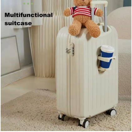 Introducing our innovative 20-inch carry-on suitcase designed to elevate your travel experience. Crafted from durable ABS material with a textured surface, this suitcase is built to withstand the rigors of travel while maintaining its sleek appearance. The hidden folding cup holder on the back provides convenient storage for umbrellas, coffee, water cups, and more, freeing up your hands for hassle-free travel.