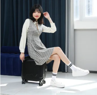 L696 New ice cream trolley carry-on suitcase lightweight girls 18-inch student suitcase men, silent wheel luggage trendy