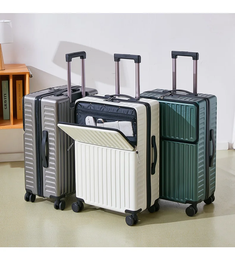 L702 Front Opening Lage Bag 2024 New Multi-Functional Student Pull Rod Travel Suitcase 24 Inch Password Leather Box for Men And…