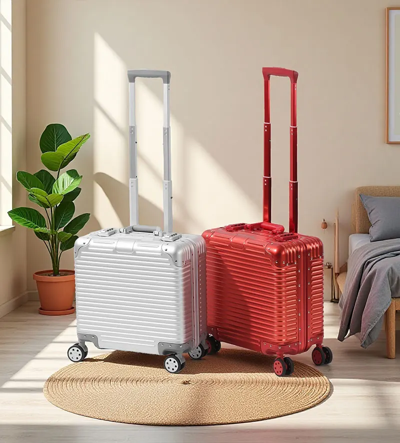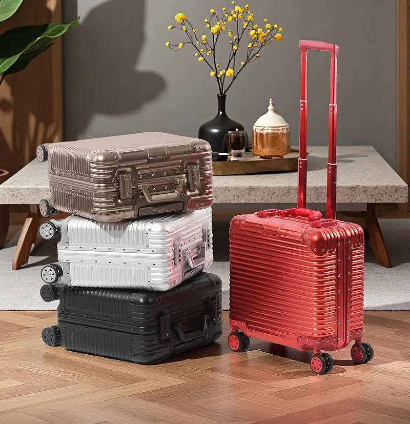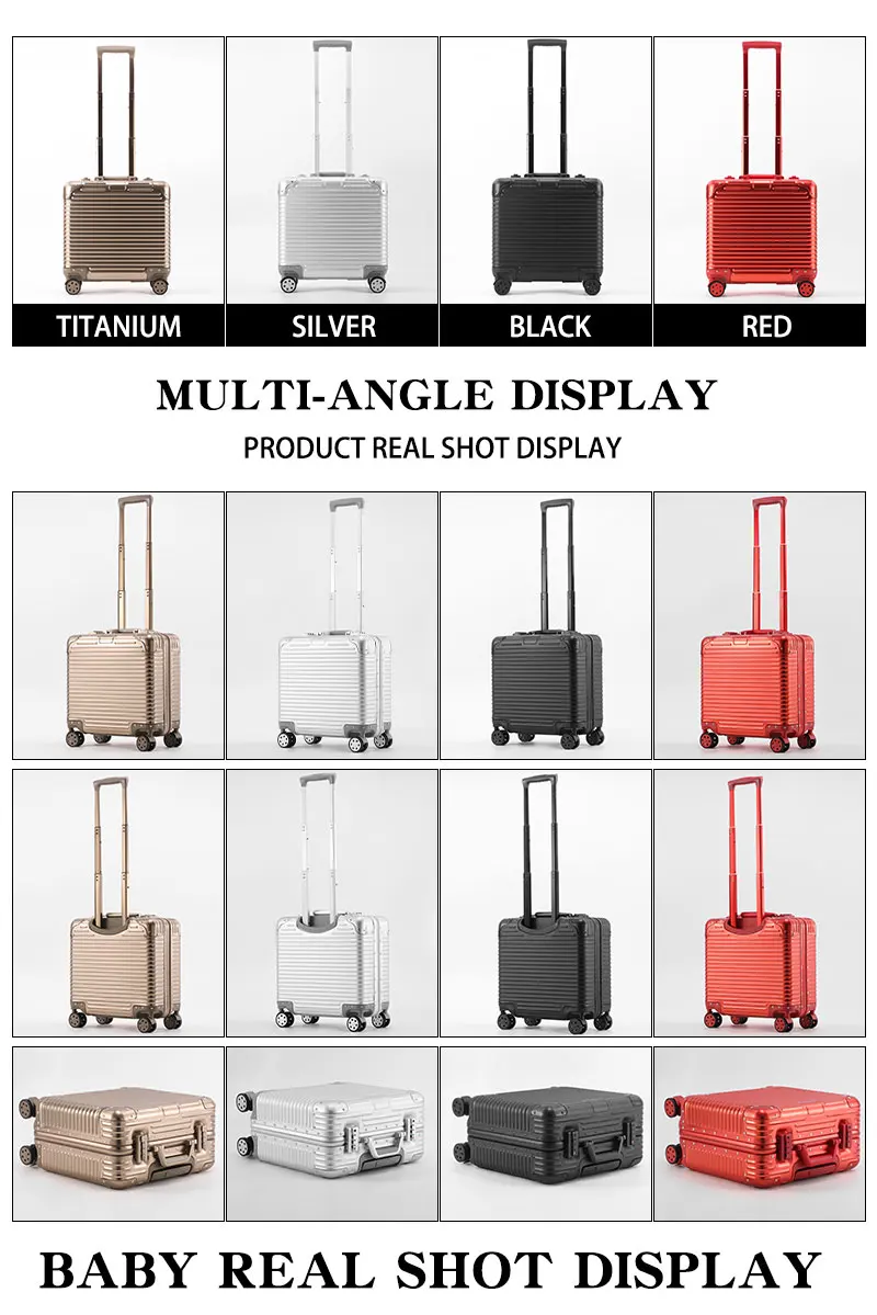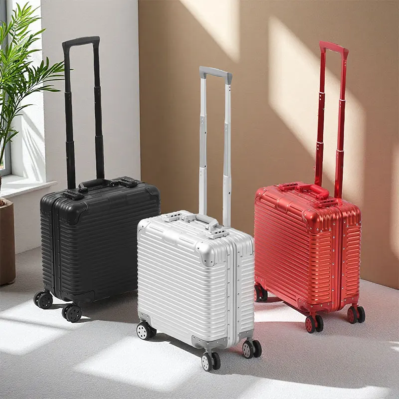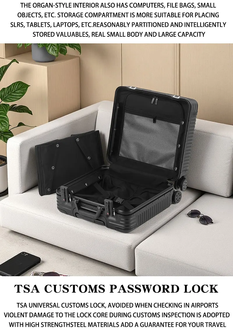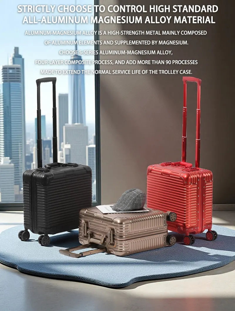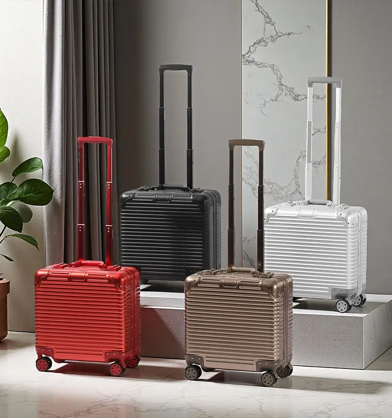 L707 Aluminum-magnesium alloy suitcase business computer boarding case TSA customs password lock universal wheel short travel case18″