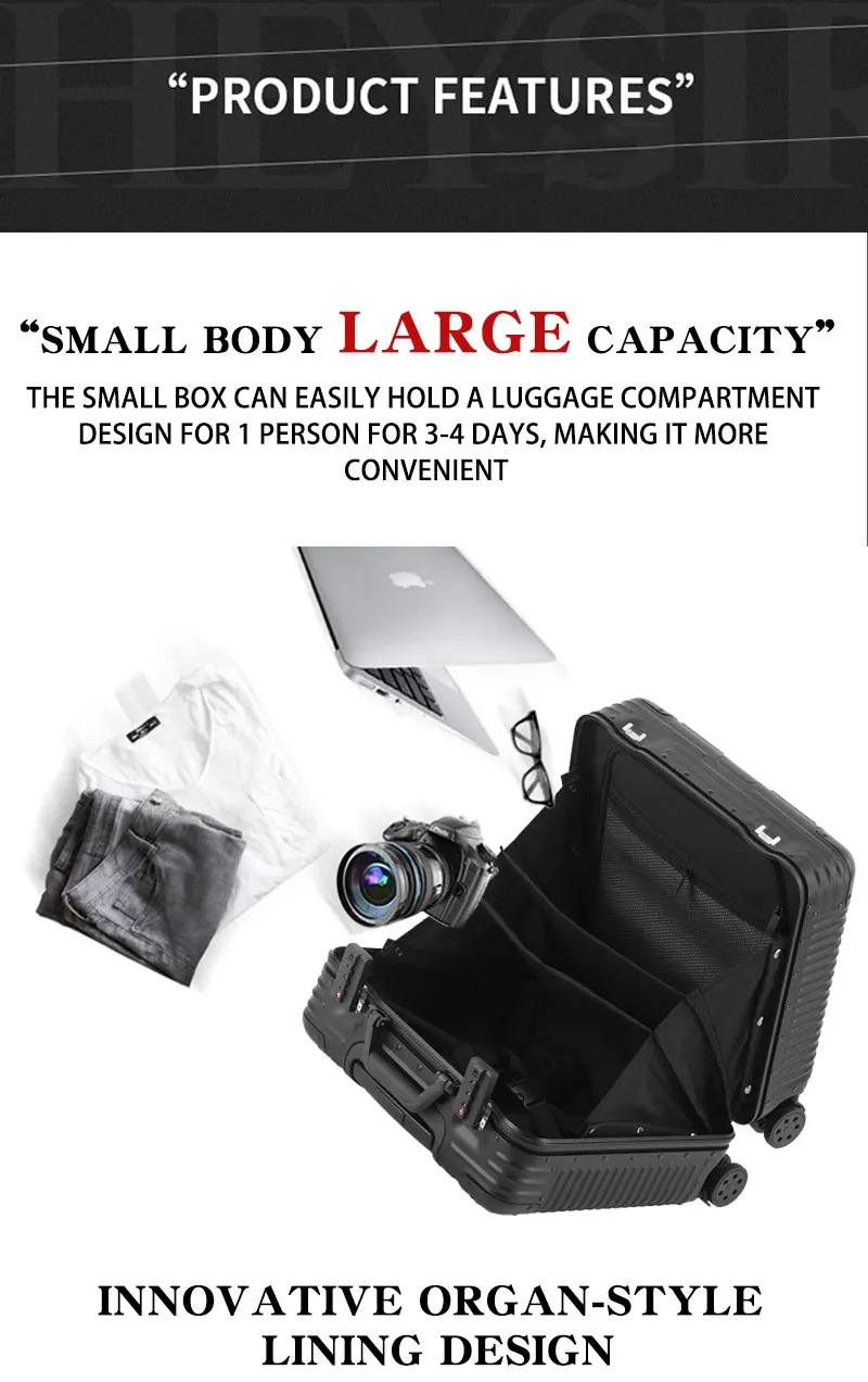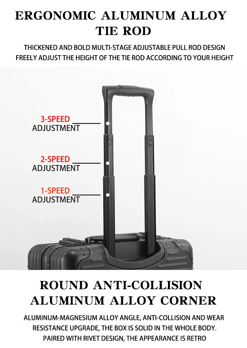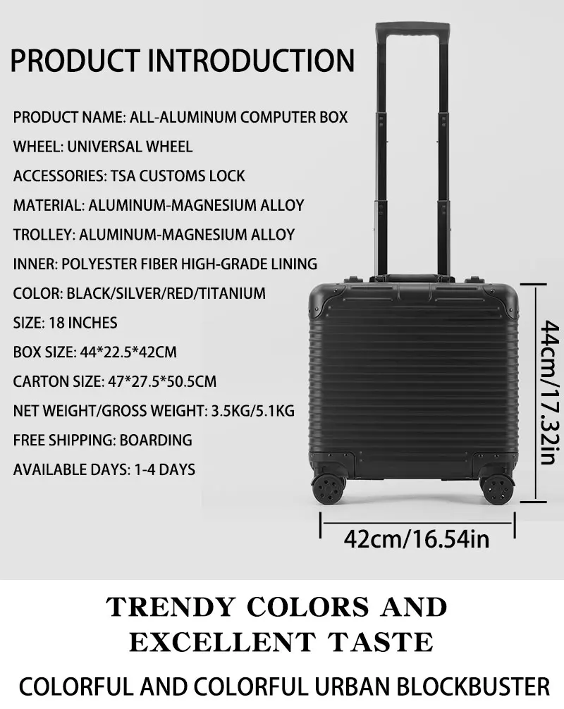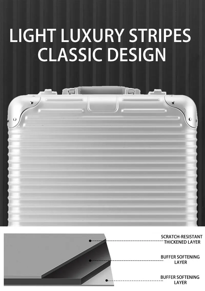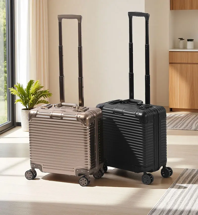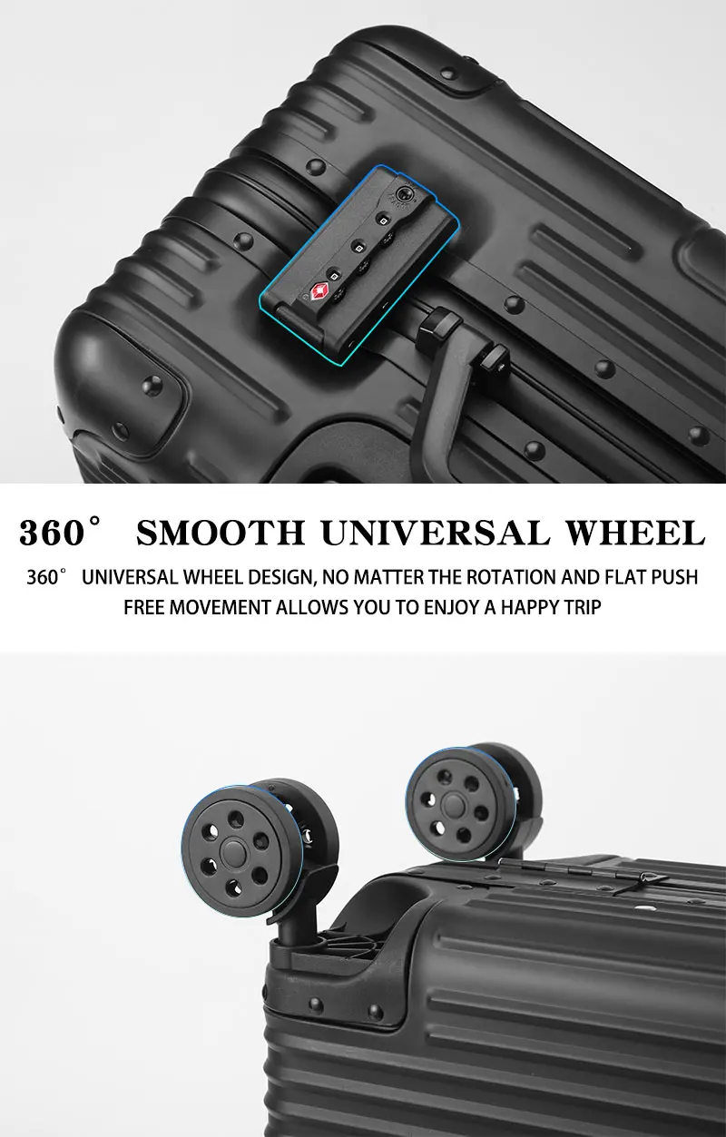L707 Aluminum-magnesium alloy suitcase business computer boarding case TSA customs password lock universal wheel short travel case18″