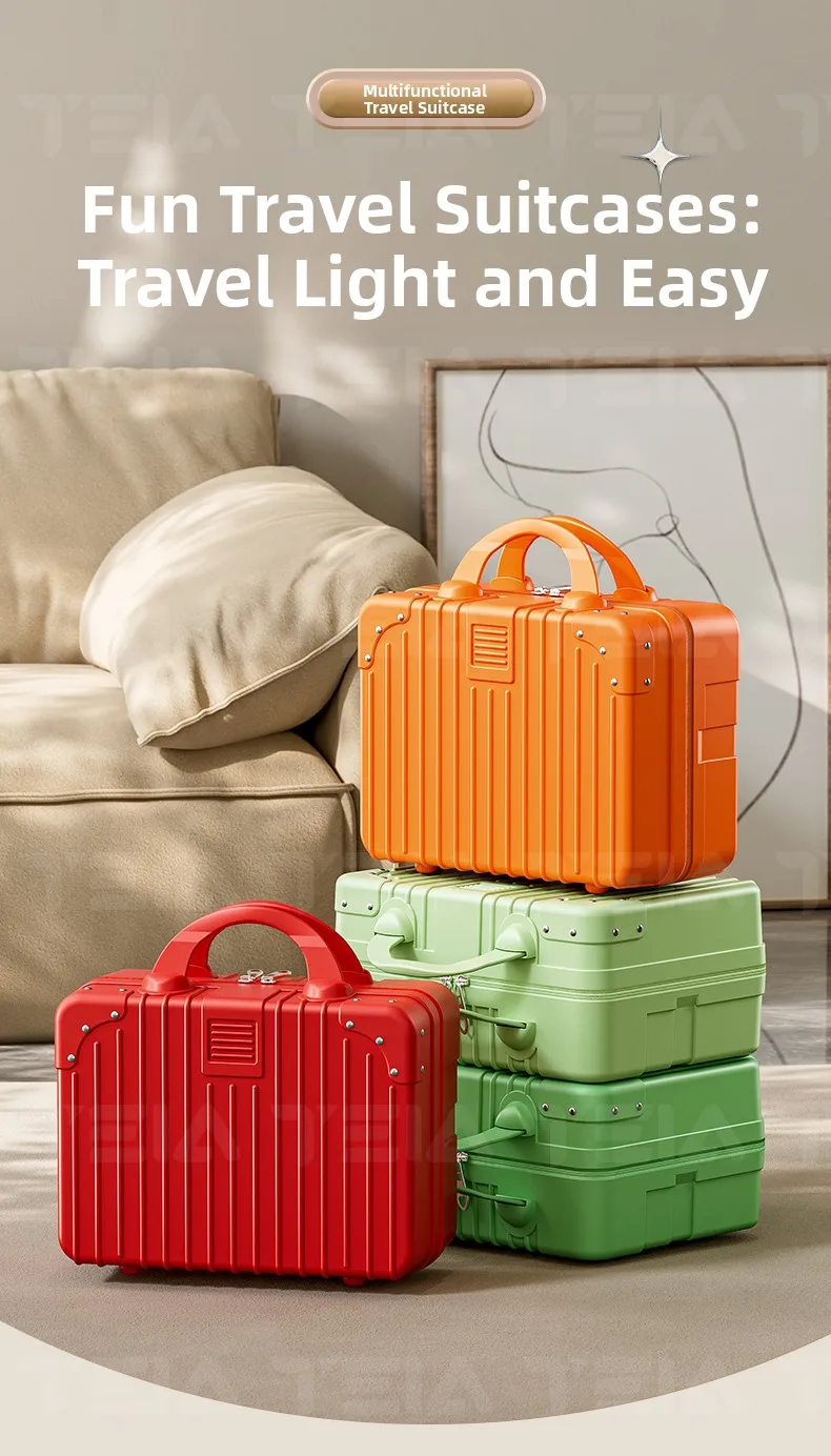 L728 Retro Handheld Suitcase Lightweight Cact Ladies eup Bag 4 Inch Travel Lage Portable Storage Organizer