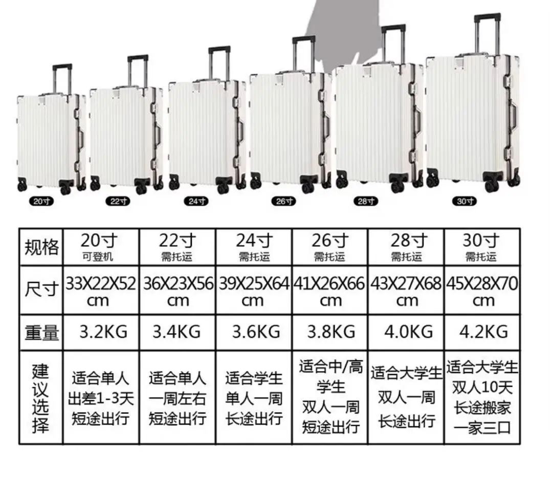 L742 New Trolley Case, Boarding Case, Suitcase, 20inch, 22inch, 24inch, 26inch, Universal Wheels, Password Lock, Aluminum Frame Suitcase