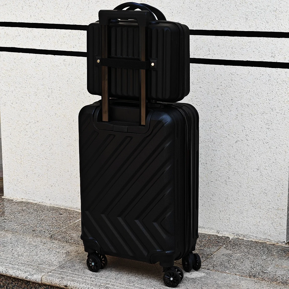 L743 2Pcs, 20inch Trolley Case and 14inch Suitcase Combination, Universal Wheel, Telescopic Trolley, Large Capacity, Layered Storage, Suitcase, Boarding Case, Lightweight Carry Suitcase, High Quality Abs Shell Material, Durable Zipper Closure