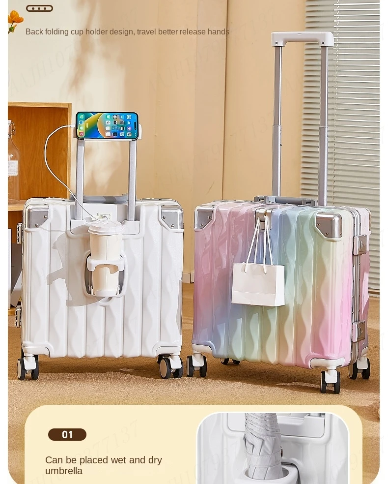 L754 Suitcase 18″20″ Password Trolley Case Suitcase Trip Cabin Small Luggage with USB Cup Holder Phone Holder Suitcase Travel Luggage