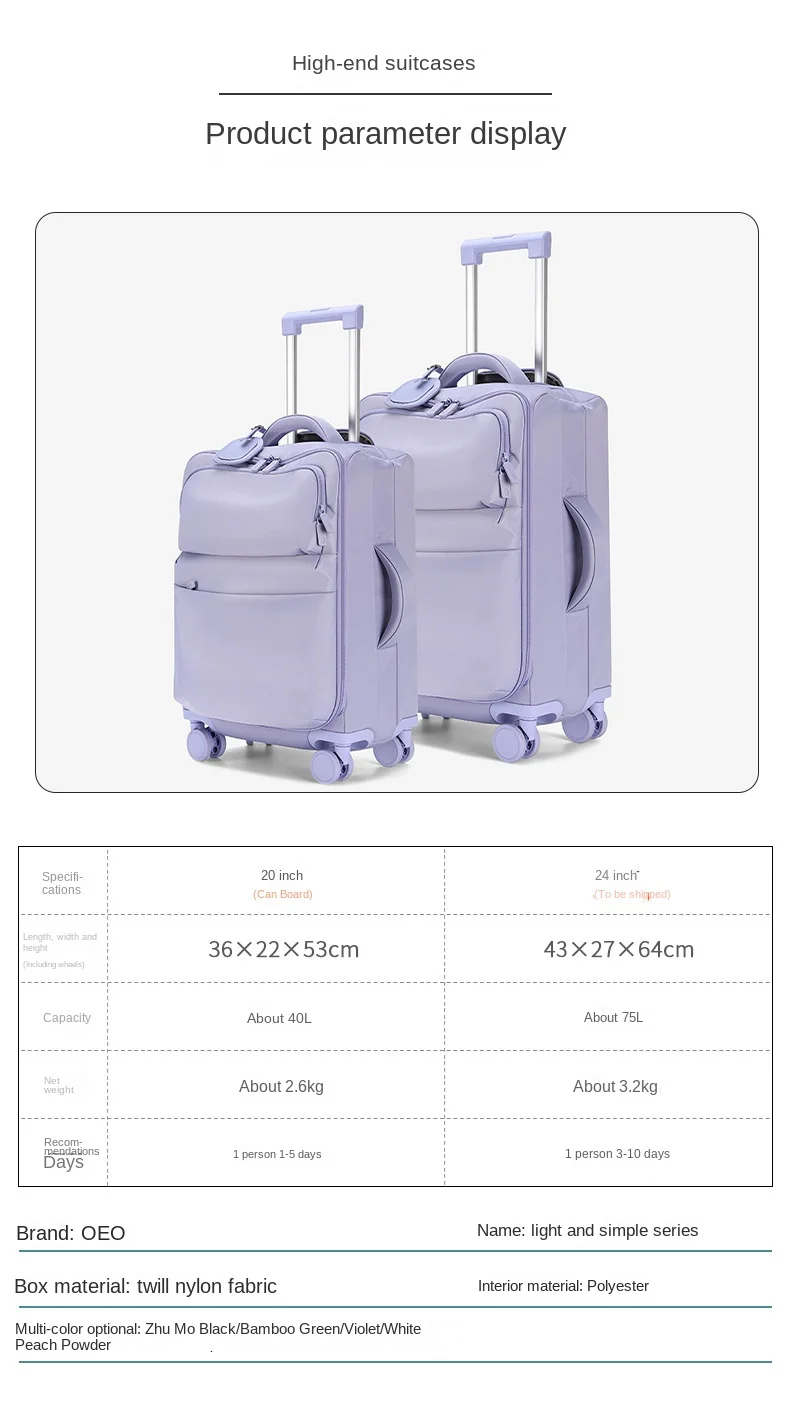 L759 20/24/28 inch Ultra-light Luggage Large Capacity Oxford Cloth Waterproof Trolley Case Boarding Box Password Travel Bag