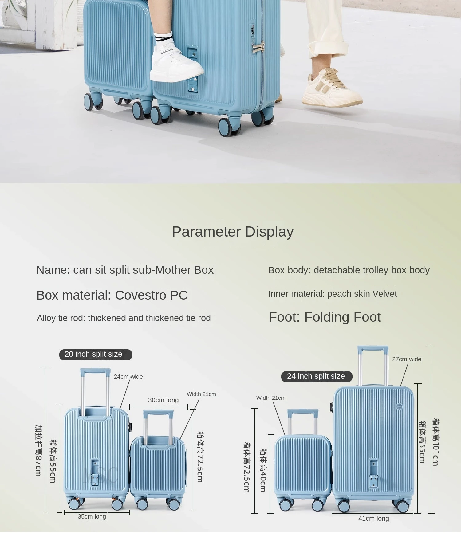 L764 2-in-1 Eight-wheel Suitcase Children Can Sit Ride Removable Luggage Set 20 inch Trolley Case Luggage Boarding Travel Suitcases