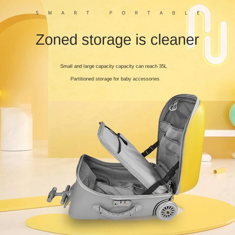 L765 Kids Luggage Can Sit And Ride Suitcase Baby Boys Girls Walking Baby Box Yellow Lazy Man Trolley Box Children’s Suitcase On Wheel