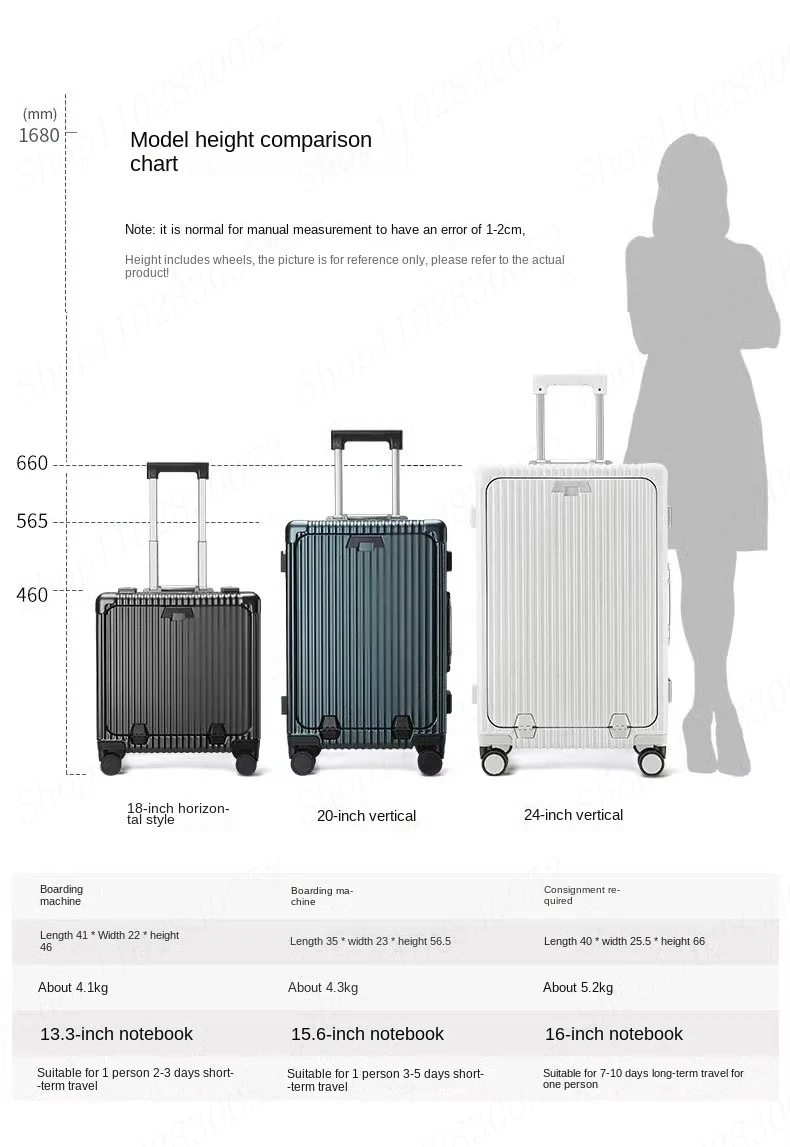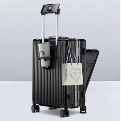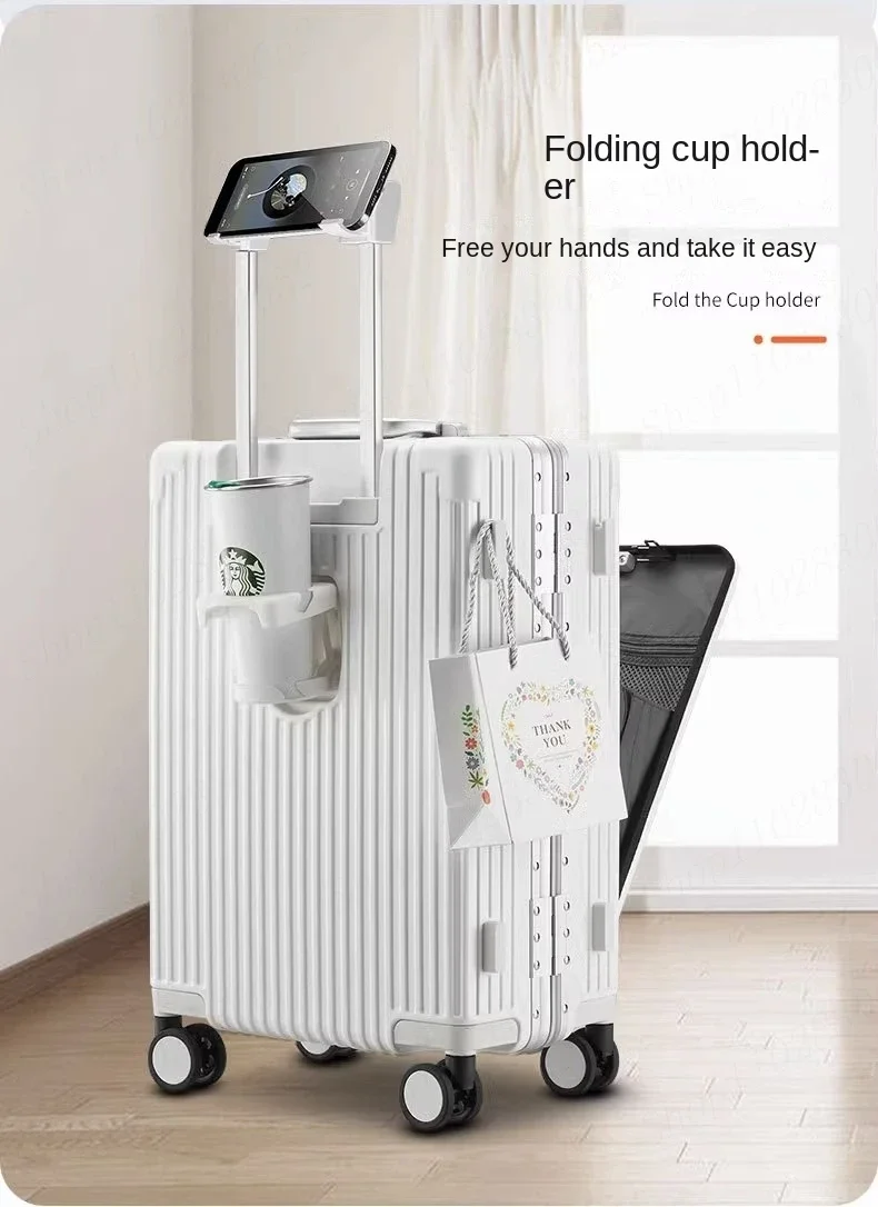 L790 Front Opening Suitcase Business Luggage with USB Cup Holder 18/20/24 Inch Suitcase Trip Cabin Aluminum Frame Trolley Case