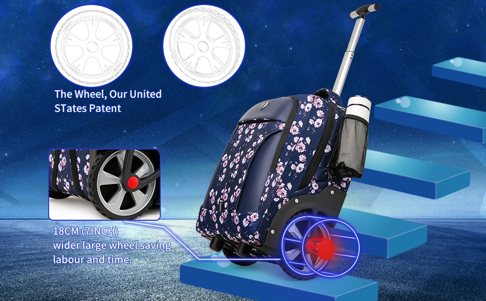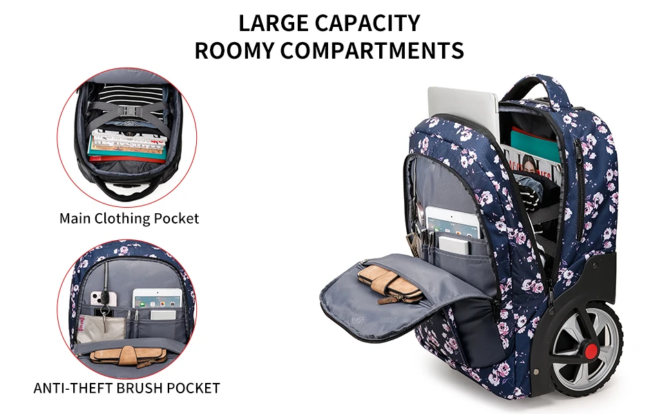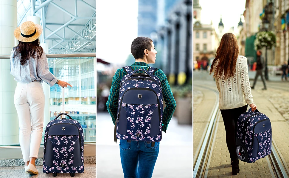 Stylish Designs & Silent Wear-Resistant Wheels: Available in a range of fashionable colors and styles, this backpack combines aesthetics with practicality. Its silent, durable wheels provide smooth mobility without disturbing those around you, enhancing your travel experience.