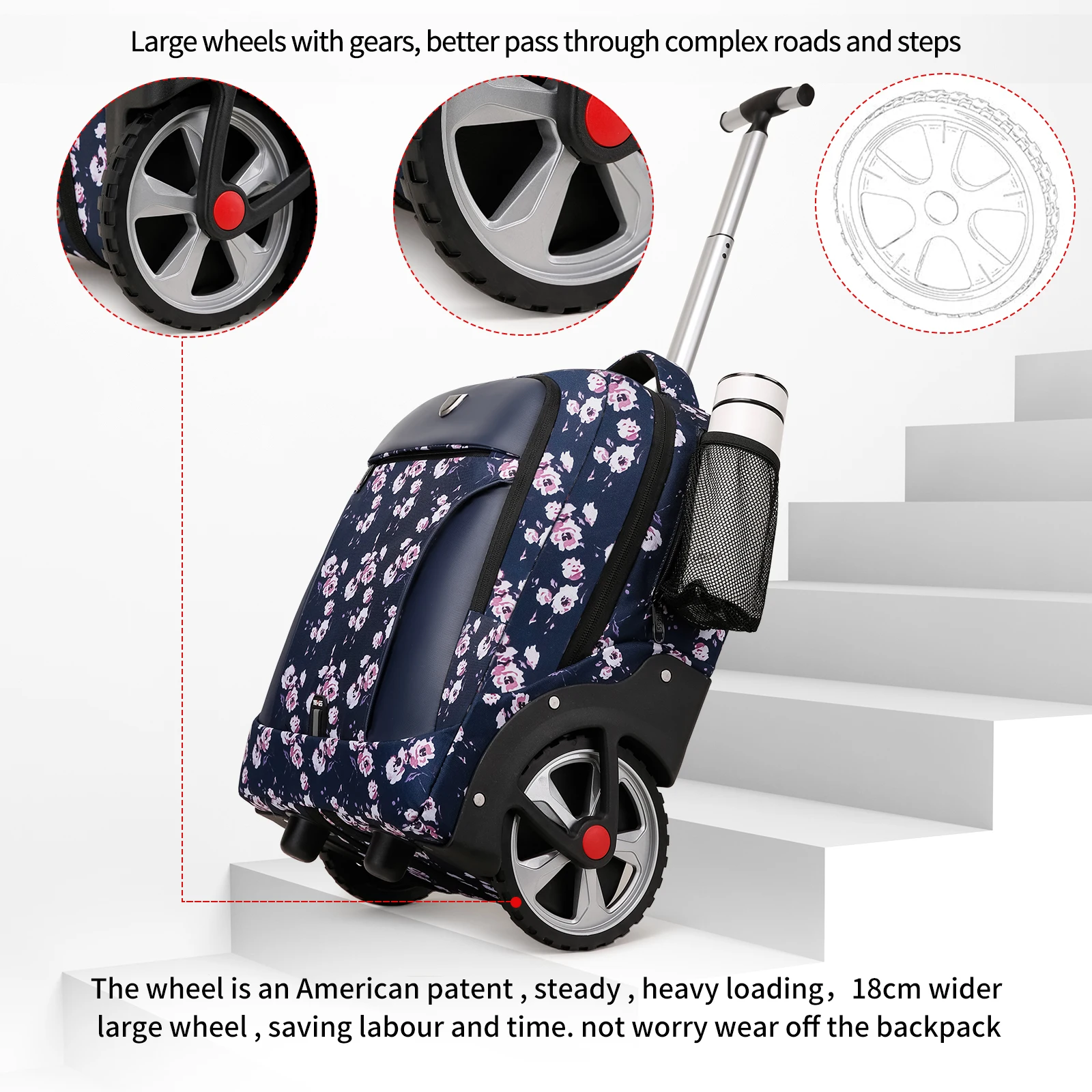 Large Capacity Travel Backpack With Wheels Hidden Pull Rod Waterproof Backpack for 17.3-inch Laptop Business Weekend Travel Bag