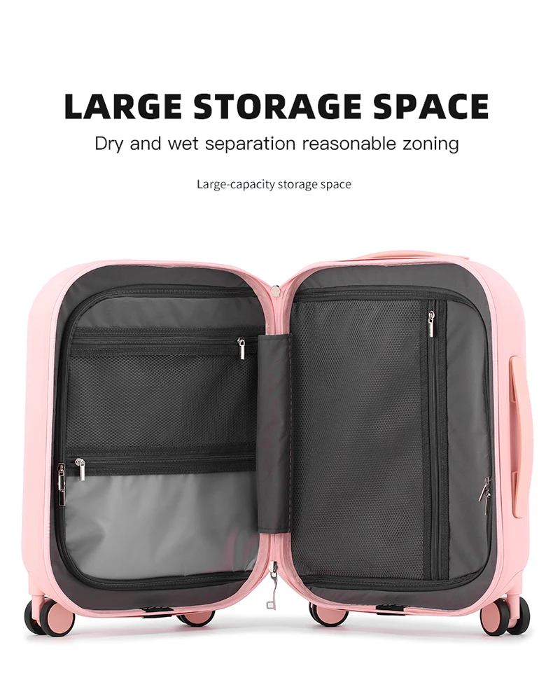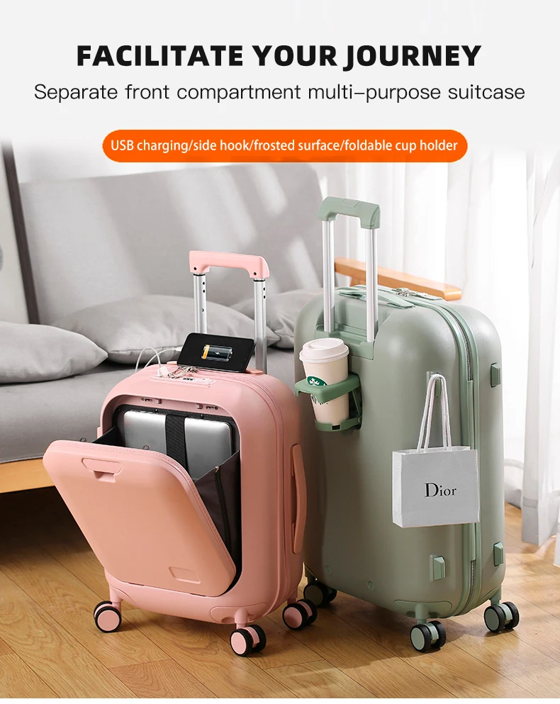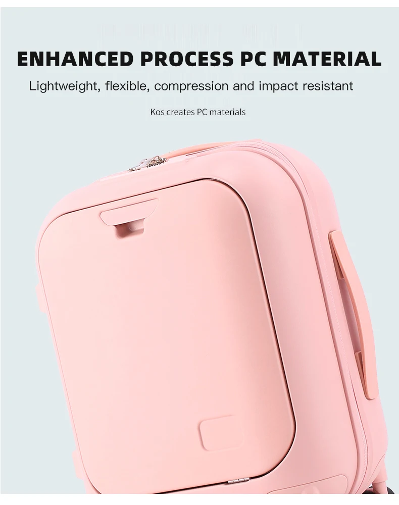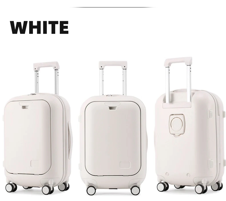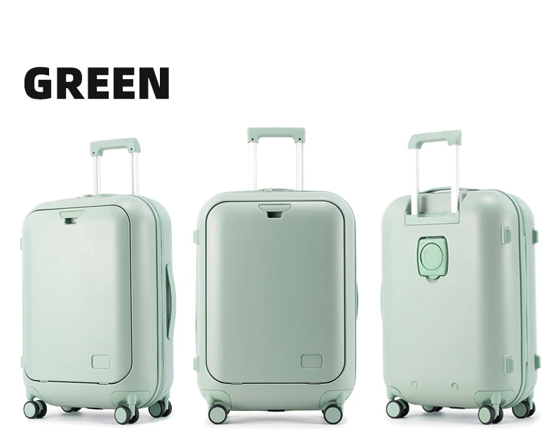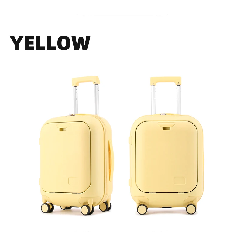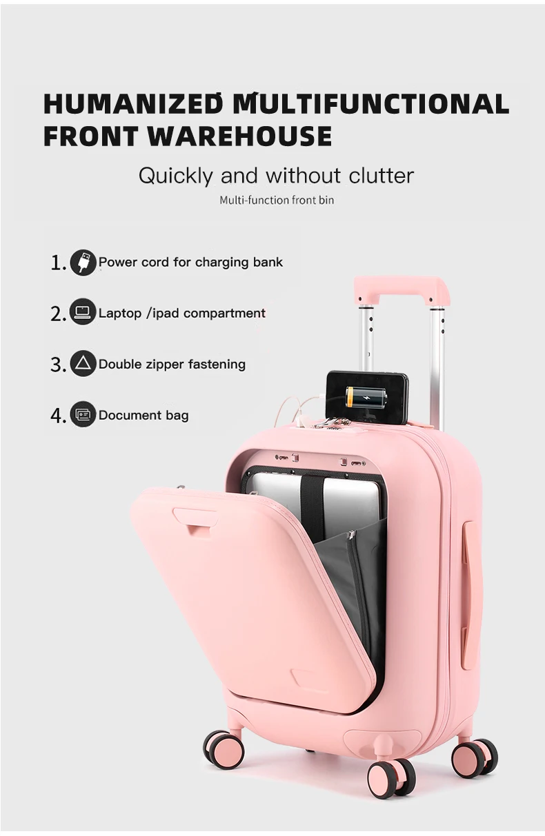 P1374 SUSHIMU Front Laptop Pocket Suitcase Wide Handle Travel Suitcase Men 20”Carry-On Luggage Women PC Aluminum Frame Trolley Case 2