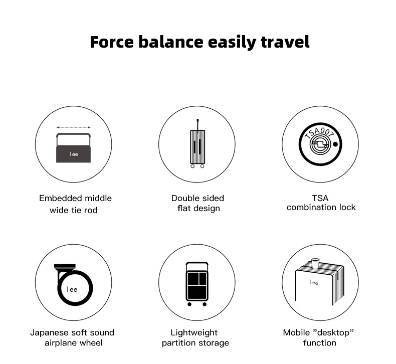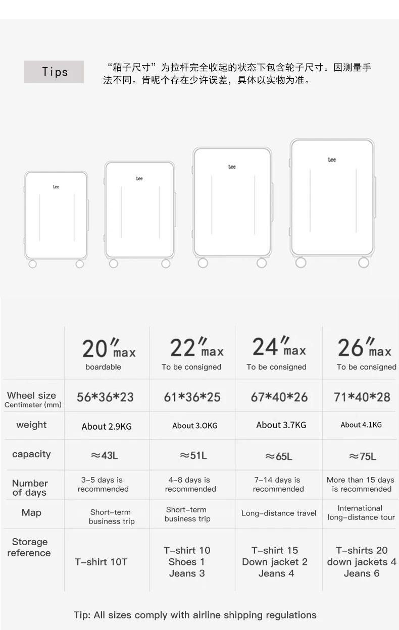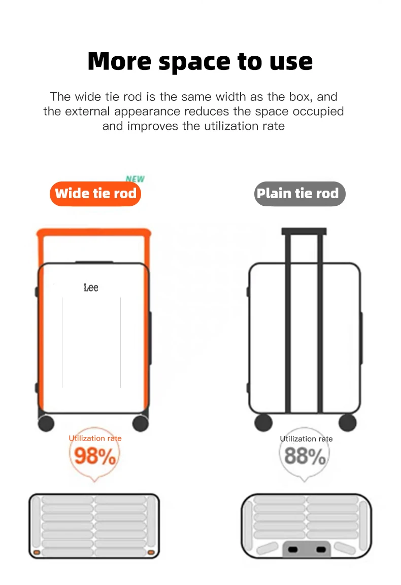 P1383 LEE Suitcase Wide Handle Travel Suitcase Men 20 24 26 Carry-On Luggage Women PC Aluminum Frame Trolley Case