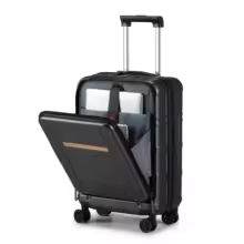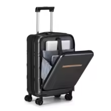 P1430 22 X 14 X 9 Airline Approved, ABS+PC 20 Inch Luggage with Front Compartment, Double Spinner Wheels, TSA Lockļ¼Black Color