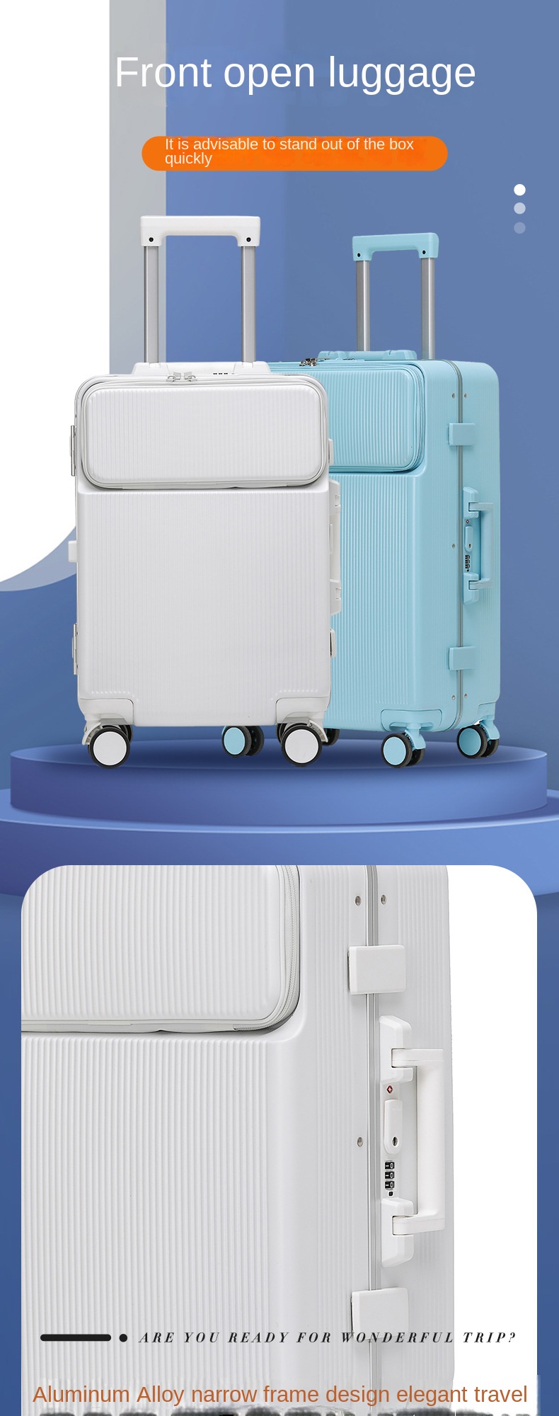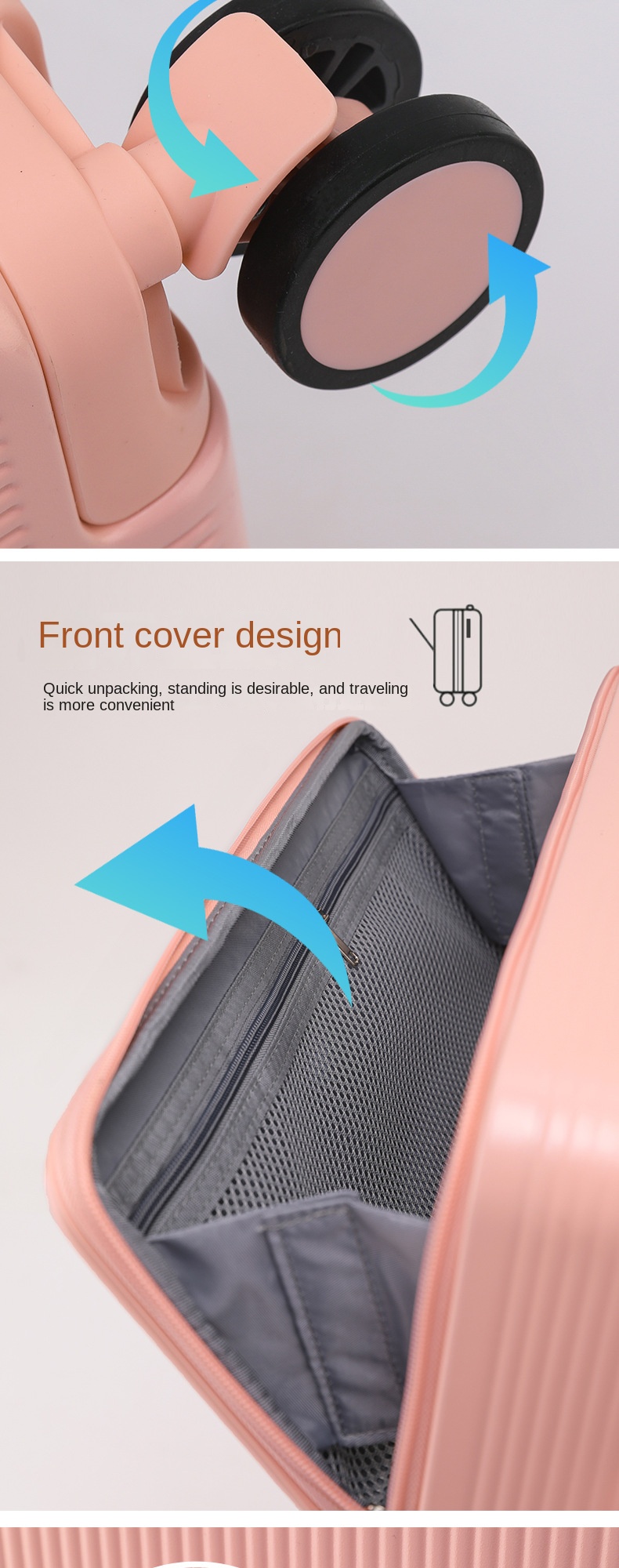 P1466 COLENARA 24″28Inch Rolling Luggage Front Opening Laptop Boarding Case USB Charging Trolley Case 20″ Carry-on Travel Suitcase