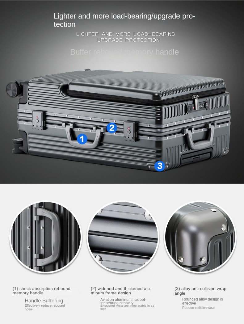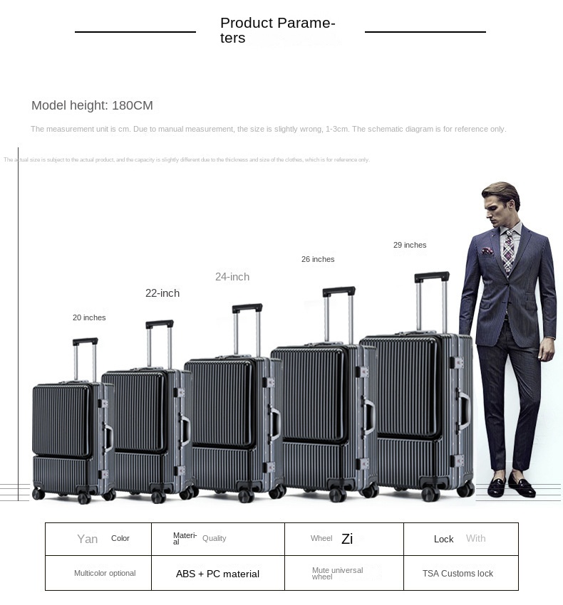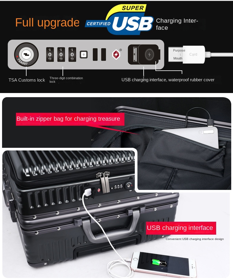 P1475 COLENARA Cabin Suitcase ABS+PC Front Opening Aluminum Frame Trolley Case 20 Inch Boarding Box 22″24″26 USB Charging Luggage