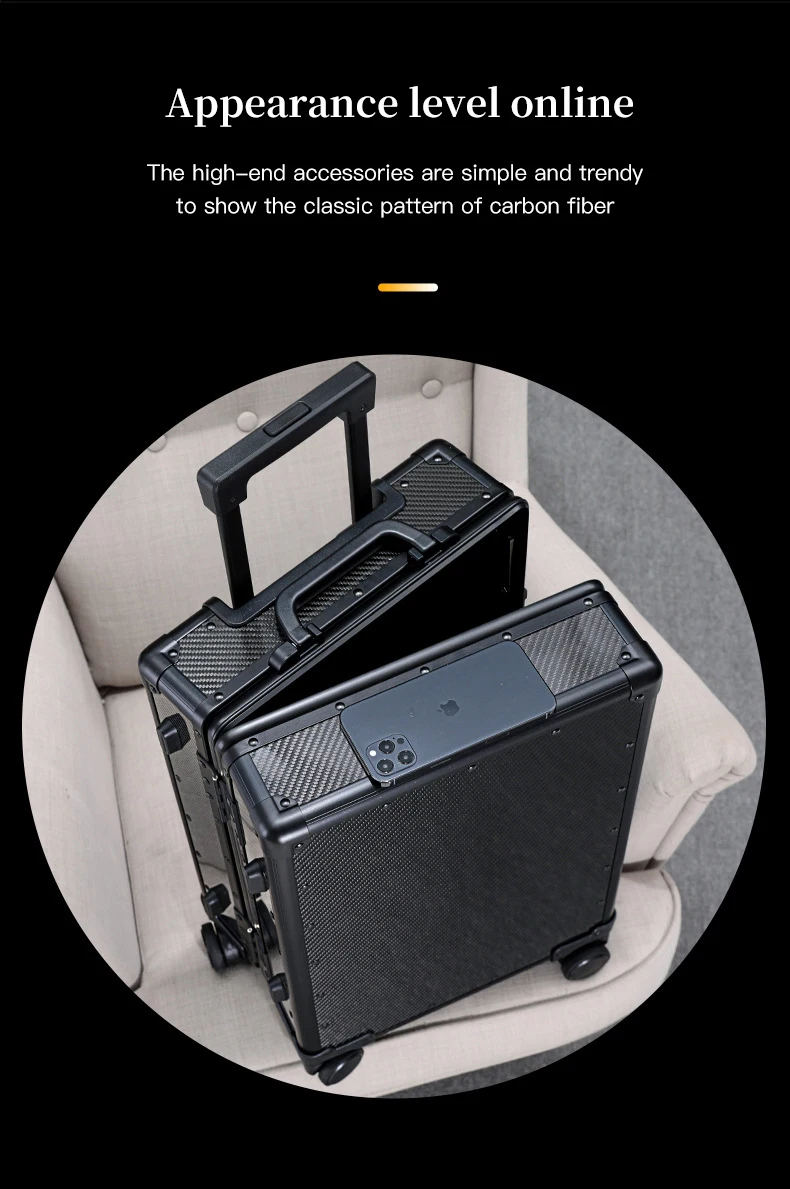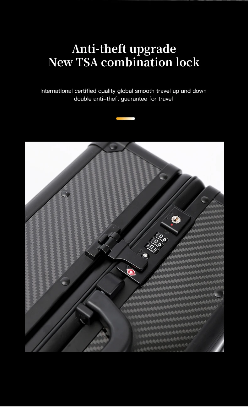 P1493 SUSHIMU carbon fibre Suitcase Wide Handle Travel Suitcase Men 20 24 26 Carry-On Luggage Women PC Aluminum Frame Trolley Case