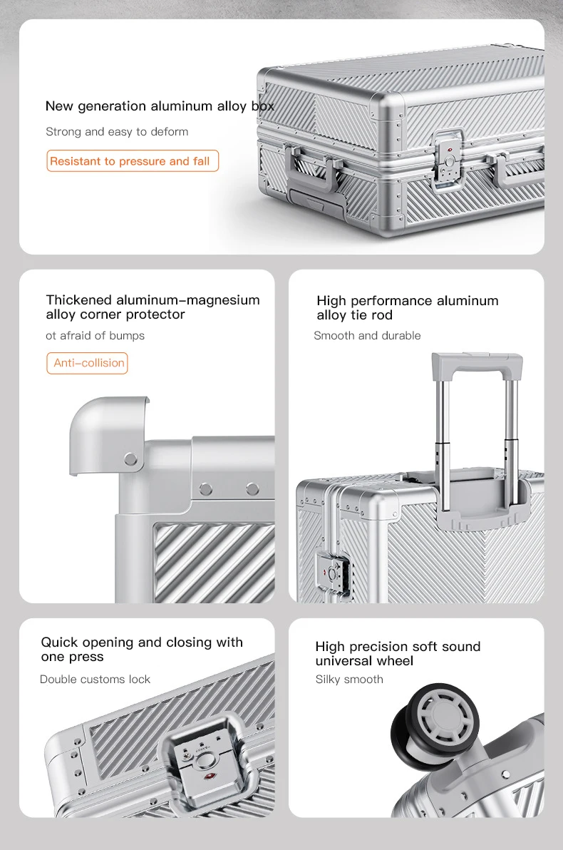 P1494 SUSHIMU All-magnesium-aluminum alloy luggage for women, 2025 new style, 20-inch carry-on suitcase, sturdy and durable trolley