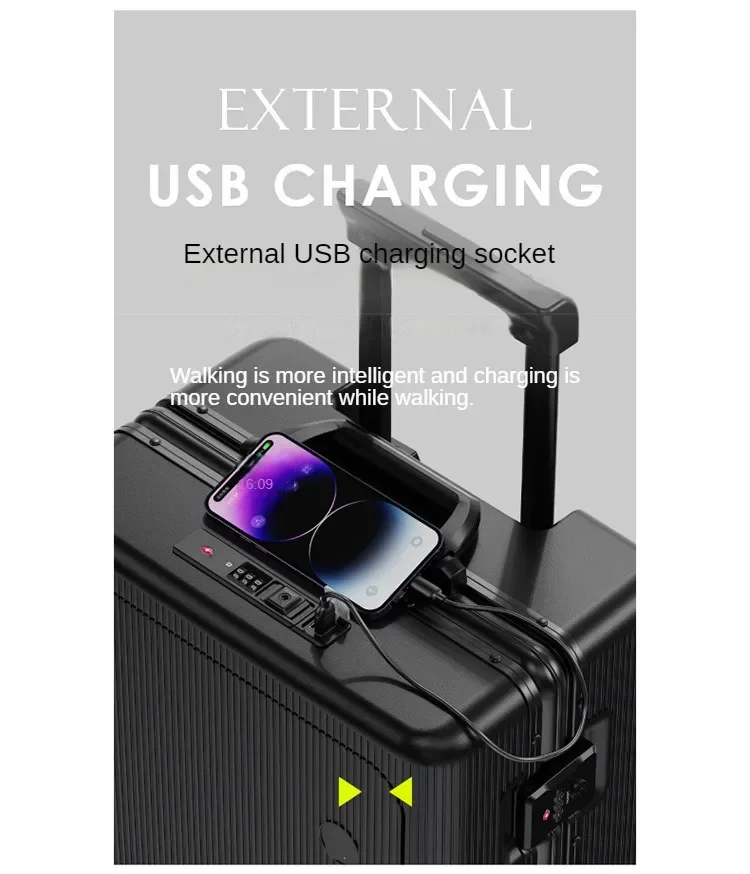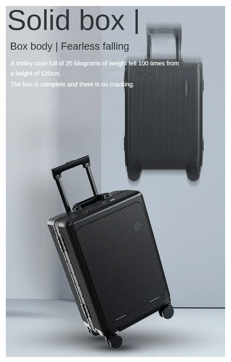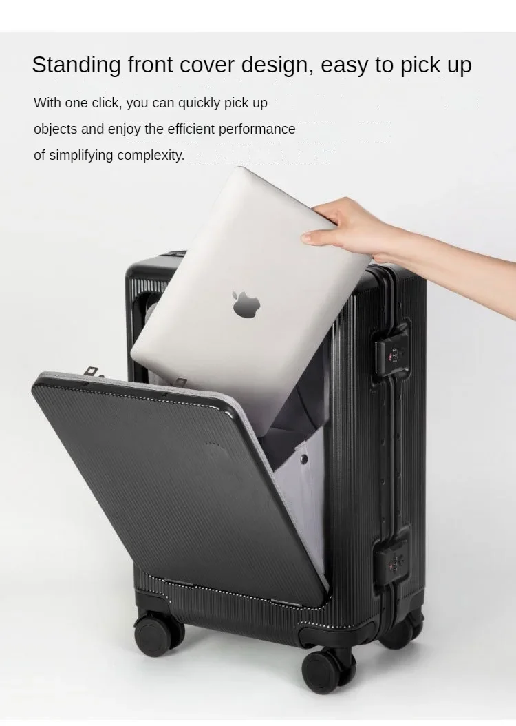 P1501 20 22 24 Front Opening Rolling Luggage Travel Suitcase Aluminum Frame Trolley Case Unisex Multifunctional Trunk with Cup Holder
