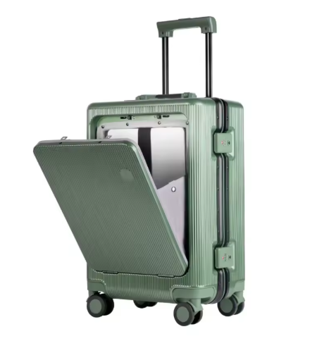 P1501 20 22 24 Front Opening Rolling Luggage Travel Suitcase Aluminum Frame Trolley Case Unisex Multifunctional Trunk with Cup Holder