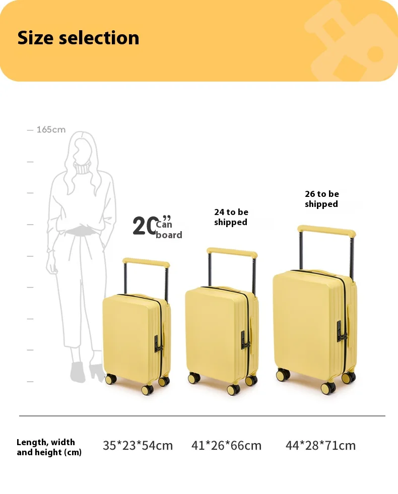 Our Wide Handle Luggage is not just a bag; it's a statement of modern travel. Lightweight and easy to carry, it reduces fatigue during prolonged travel, making it a practical choice for the frequent traveler. Its sleek design and multiple sizes make it a versatile addition to any traveler's collection. Whether you're heading on a business trip or a family vacation, this luggage set is designed to meet your needs with ease and style.