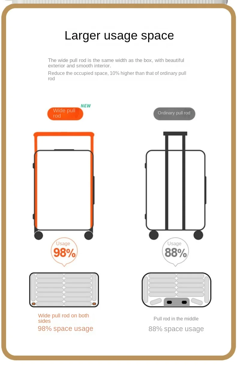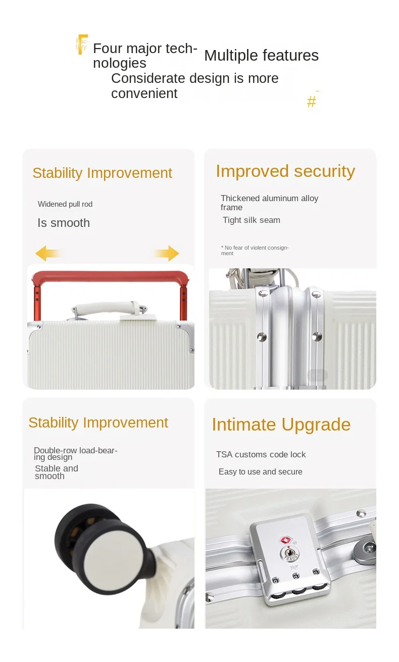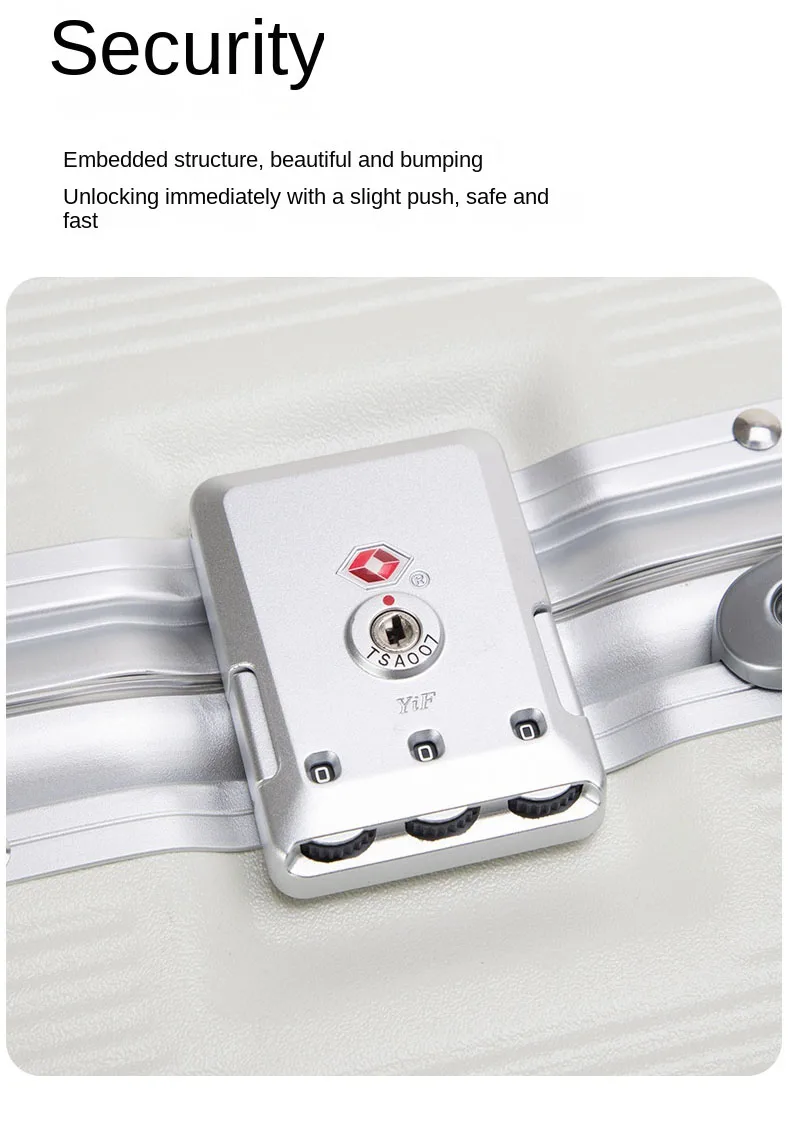 Crafted from robust ABS PC and an aluminum frame, this suitcase ensures longevity and resistance to impact.