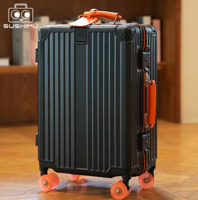 P1598 SUSHIMU Suitcase Wide Handle Travel Suitcase Men 20 24 Carry-On Luggage Women PC Aluminum Frame Trolley Case