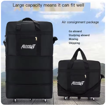 P1599 Travelling Pack Wheels For Women Men Expandable Foldable Trolley Luggage Versatile Black Suitcase For Weekend Trip overnight bag