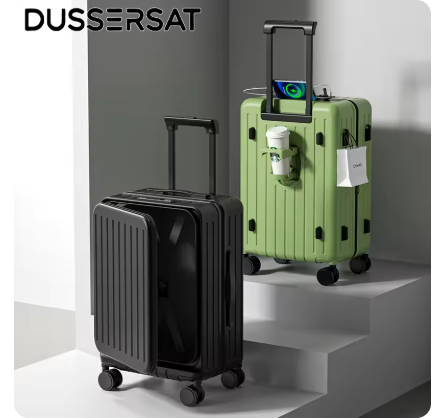 P1617 2025 New Large Capacity Luggage Suitcase Cup Holder USB Charging Men Women Girl Carry-On Boarding Luggage Travel 20/24/26 inch