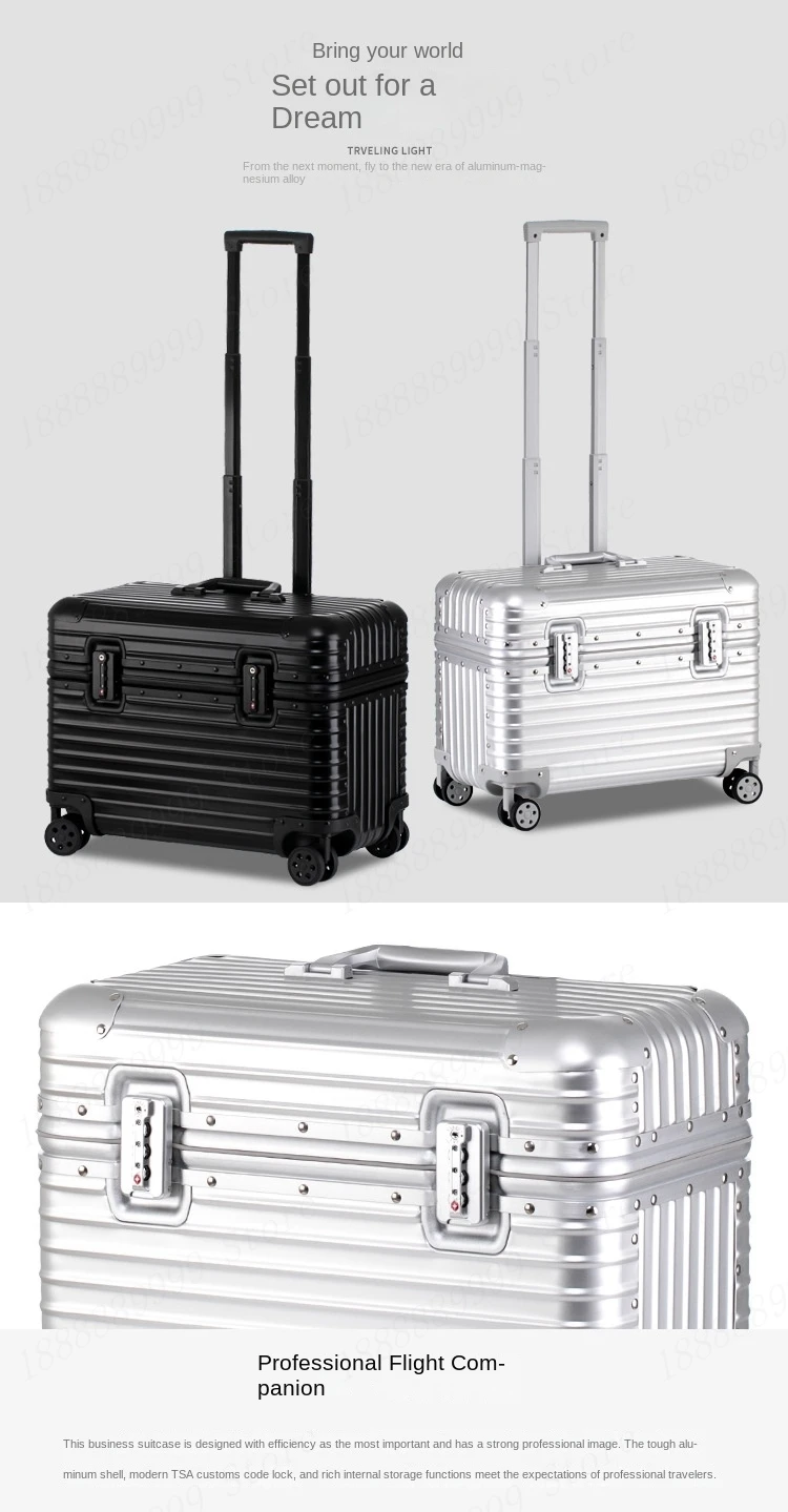 P1628 18/22” 100% Aluminum Small Suitcase Top Opening Photography Camera Case Carry-on Cabin Suitcase Password Lock Luggage Toolbox