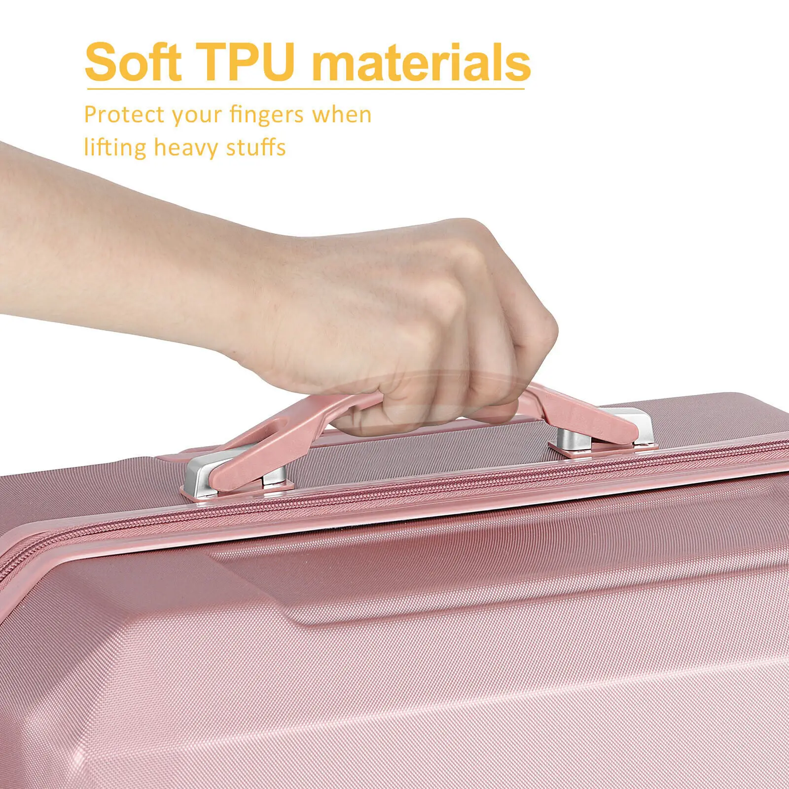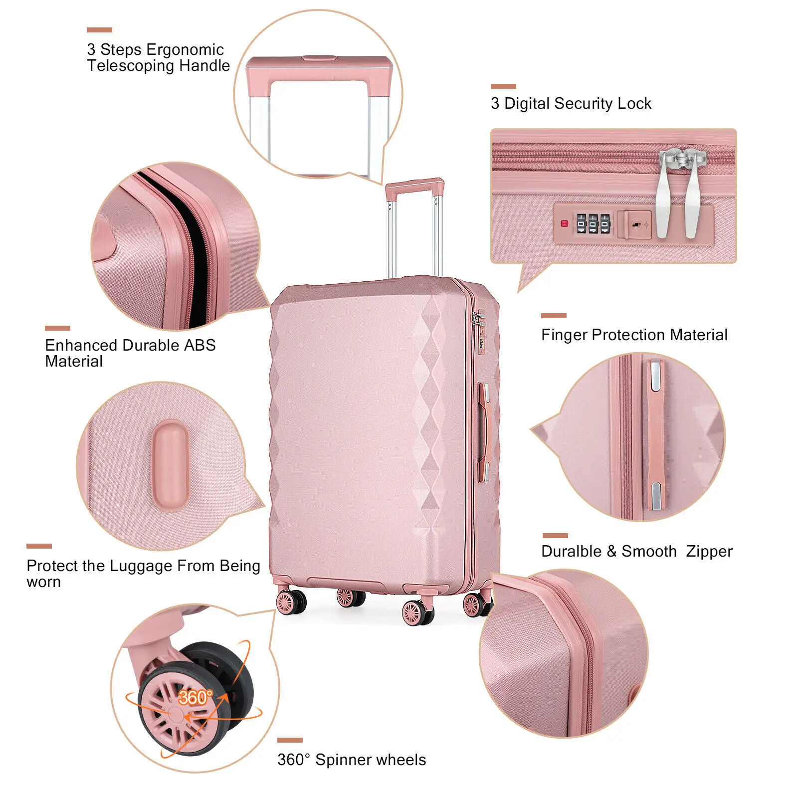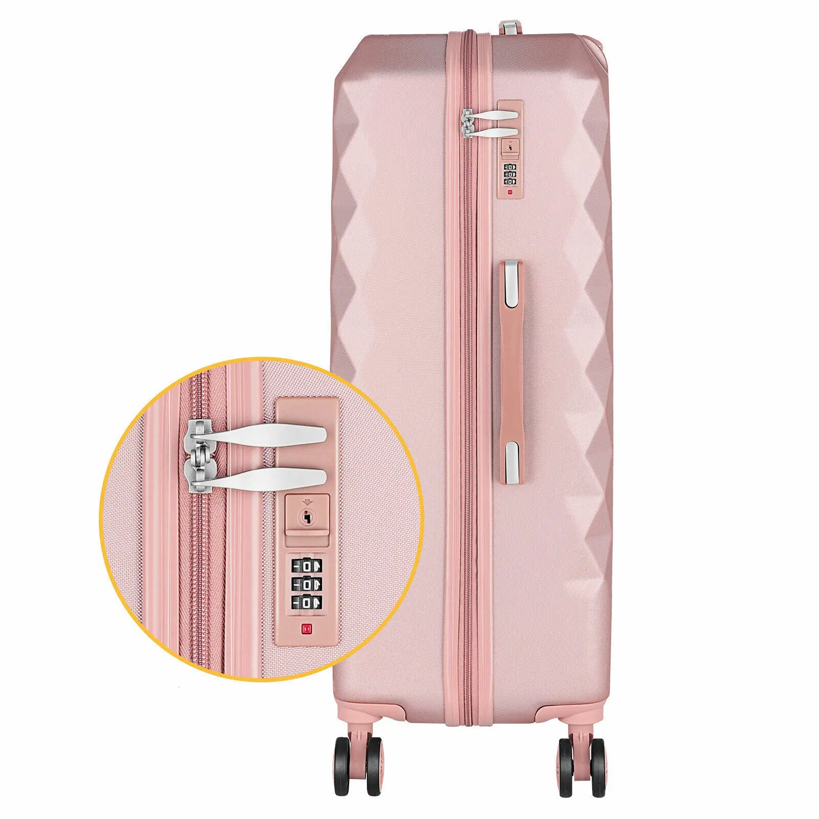 P1636 Trio of ABS Suitcases – Black, Silver and Rose Gold 20″”24″”28″” Lightweight & Durable, Flexible & Tough Exterior ABS Luggage