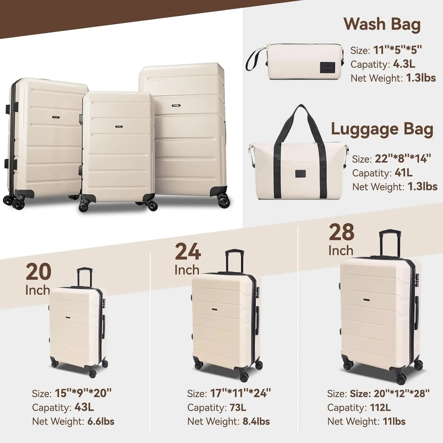 P1644 20/24/28in Luggage 5-Piece Set ABS+PC Hardshell Carry-on Suitcase with Spinner Wheels&TSA Lock for Plane,Travel,Business