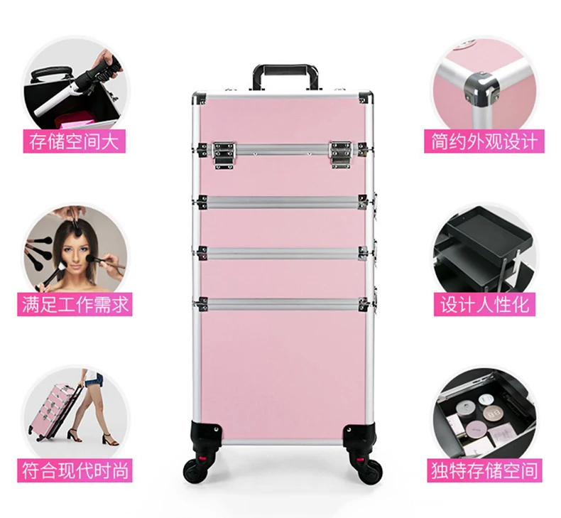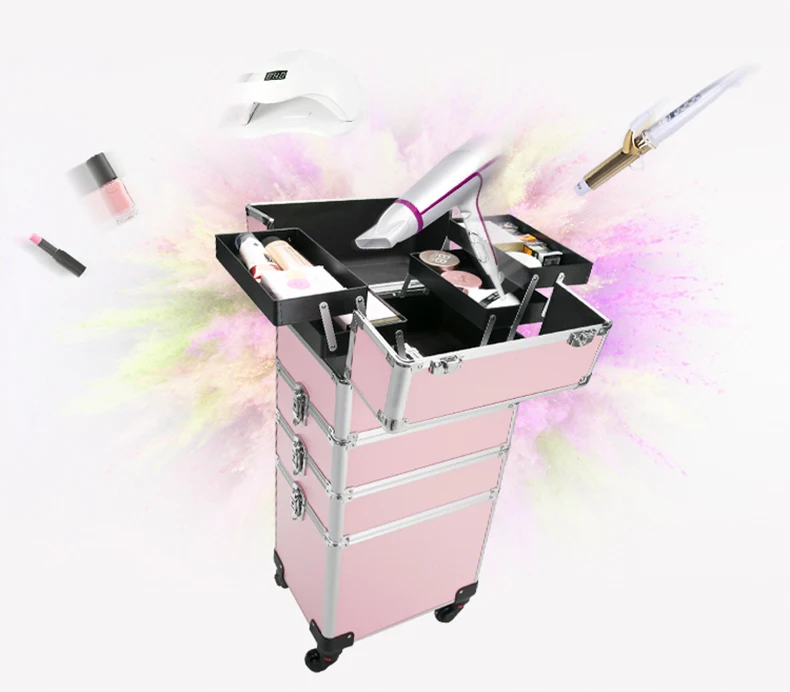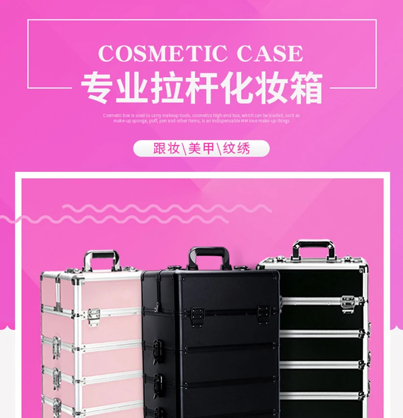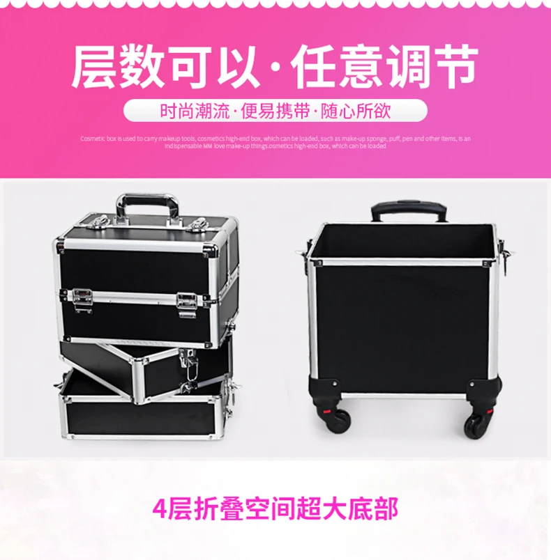 P1672 Professional 2/3/4 layers trolley makeup suitcase portable cosmetic trolley luggage box nail tattoo embroidery beauty toolbox