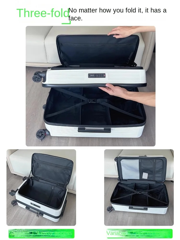 P1678 New Side Opening Suitcase Three Folding Trolley Case Five Wheel Universal Wheel Password Box Expandable Cabin Luggage 20 inch