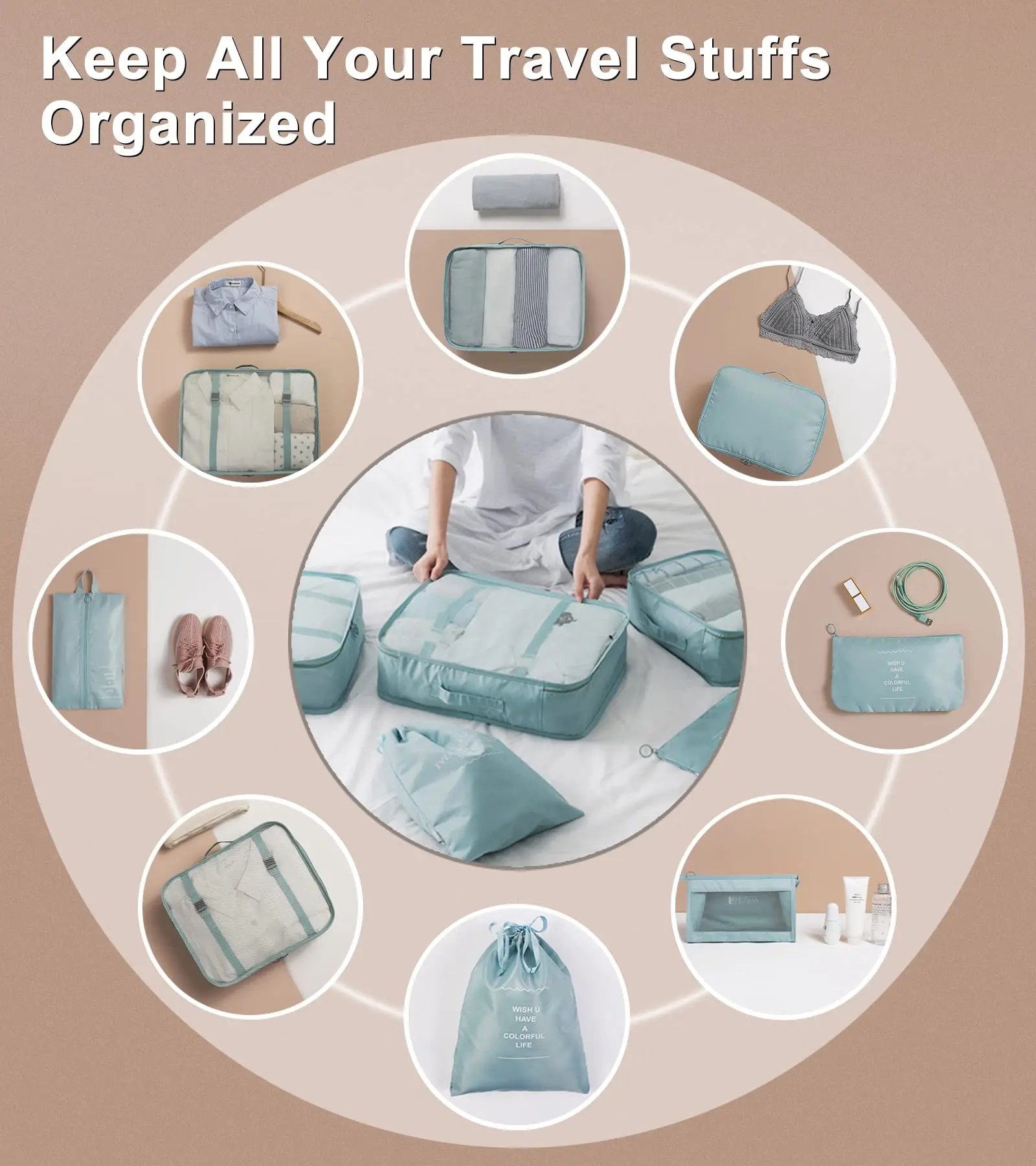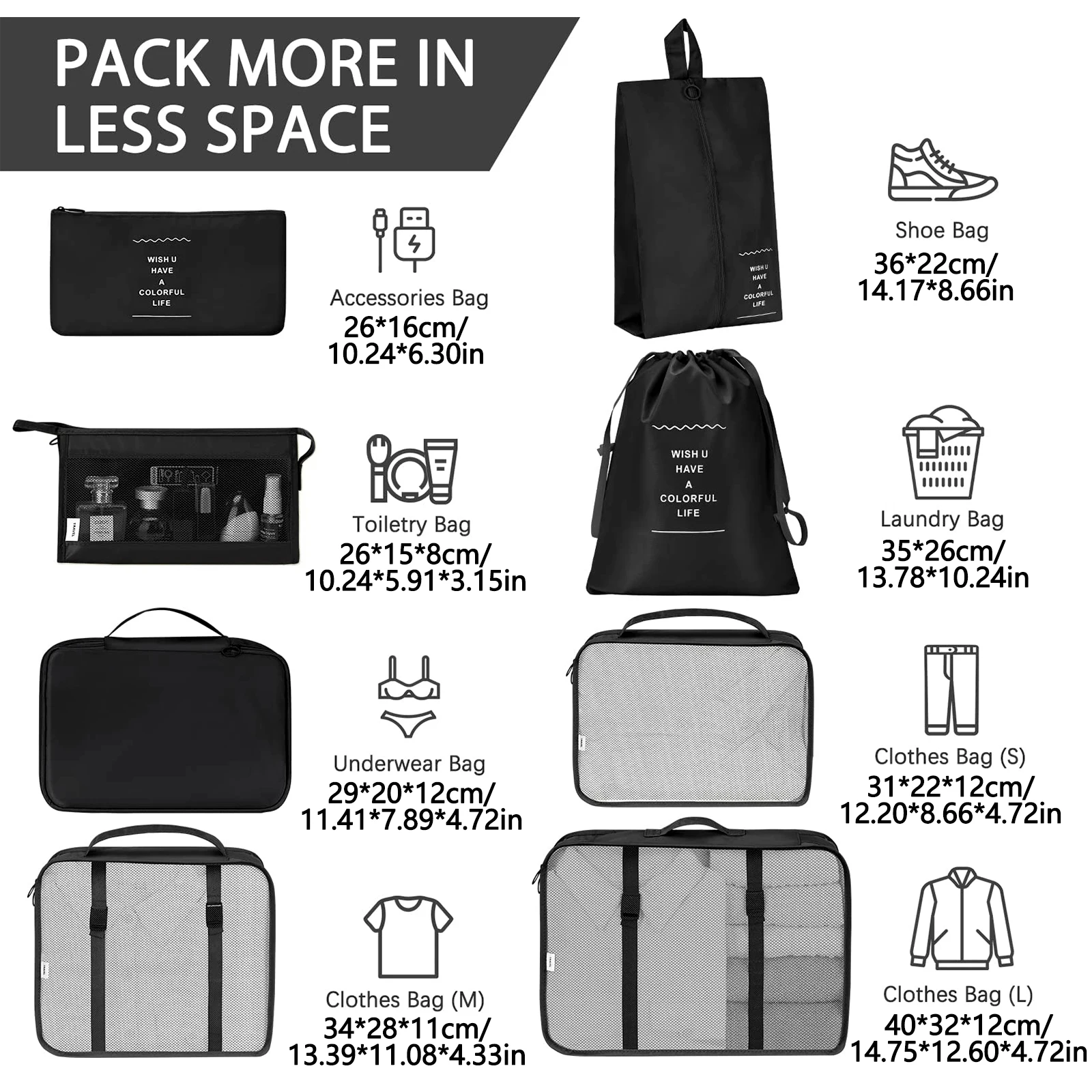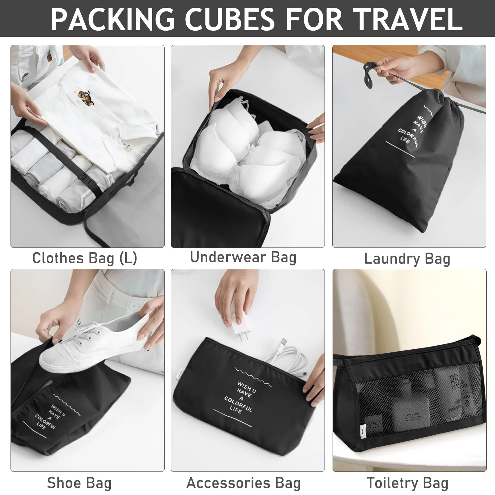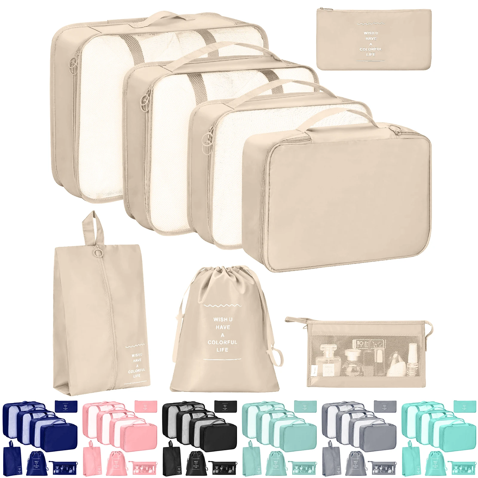 Pi1216 Pcs/Set Travel Organizer Storage Bags Suitcase Packing Cubes Set Cases Portable Luggage Clothes Shoe Tidy Pouch Folding.-zmt