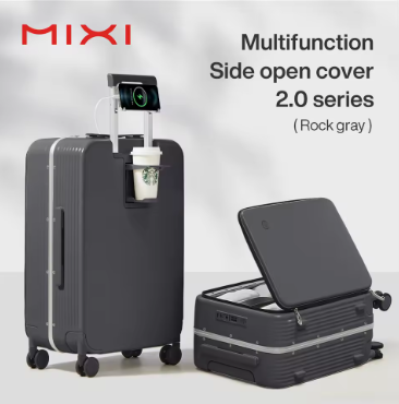 Pi1230 Mixi New Aluminum Frame Suitcase Carry On Rolling Luggage with USB Port Boarding Cabin Cup and Phone Holder 20 24 Inch