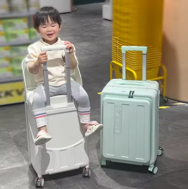 Pi1239 New Suitcase with Seat for Children Aluminium Frame Front Open Lid Rolling Luggage Ride on Kids Suitcase 22” Cabin Luggage