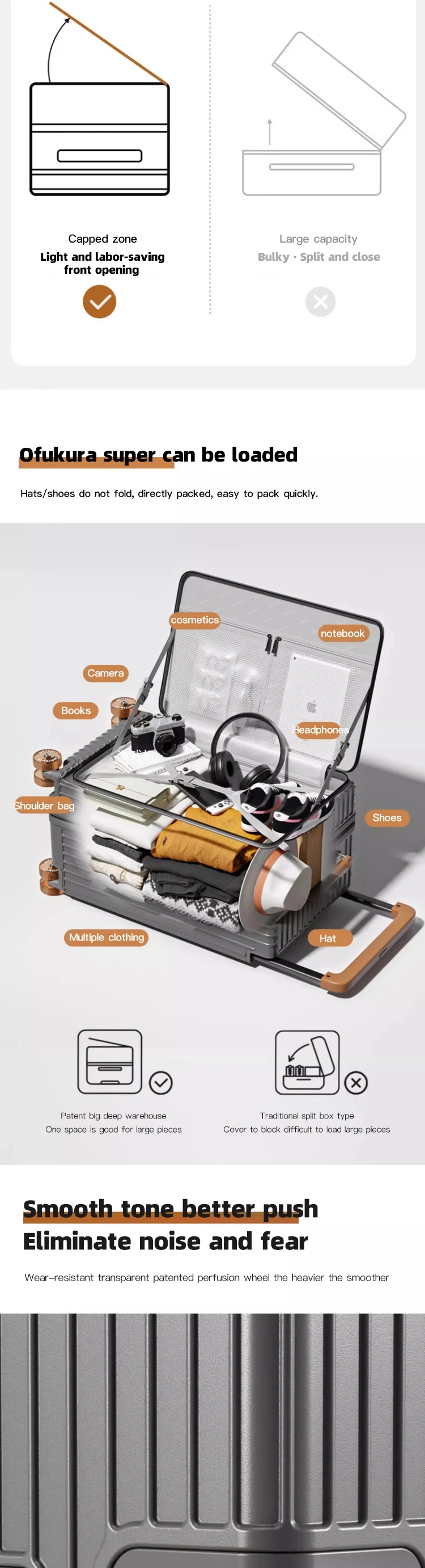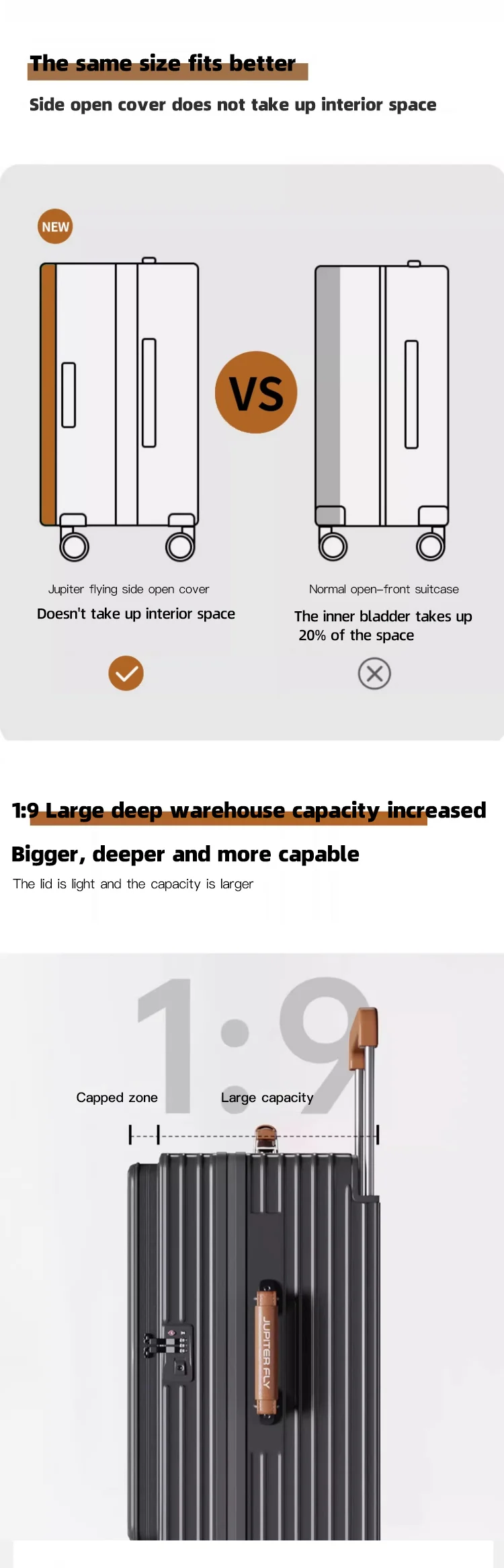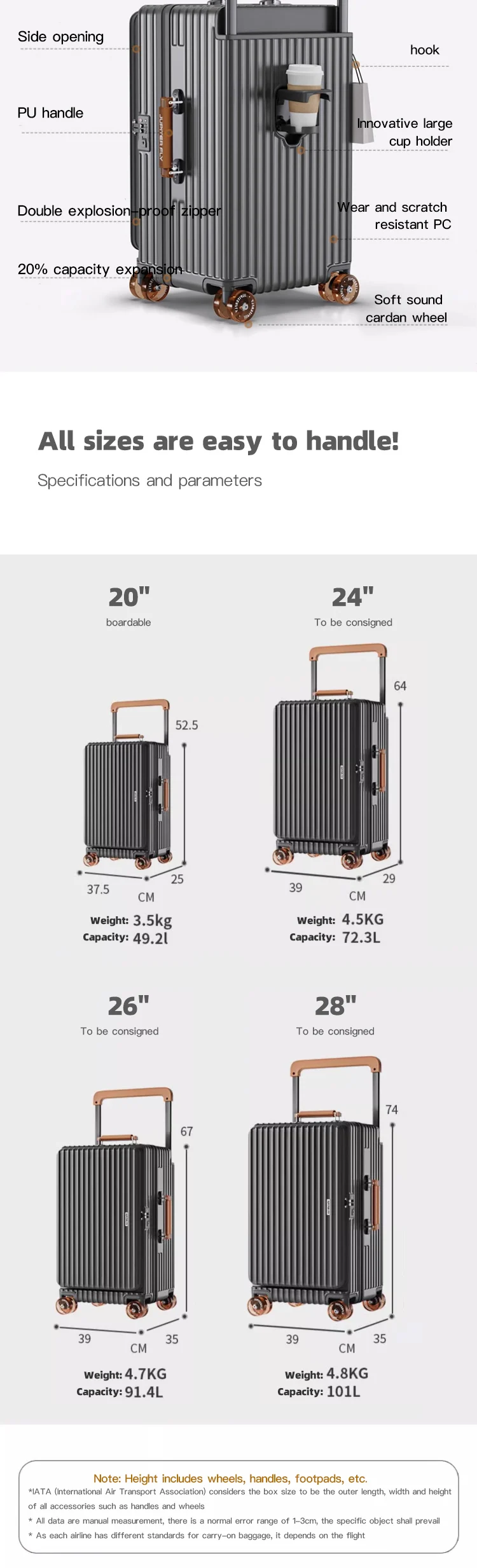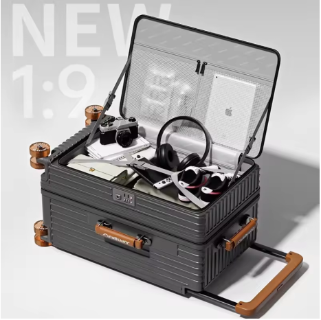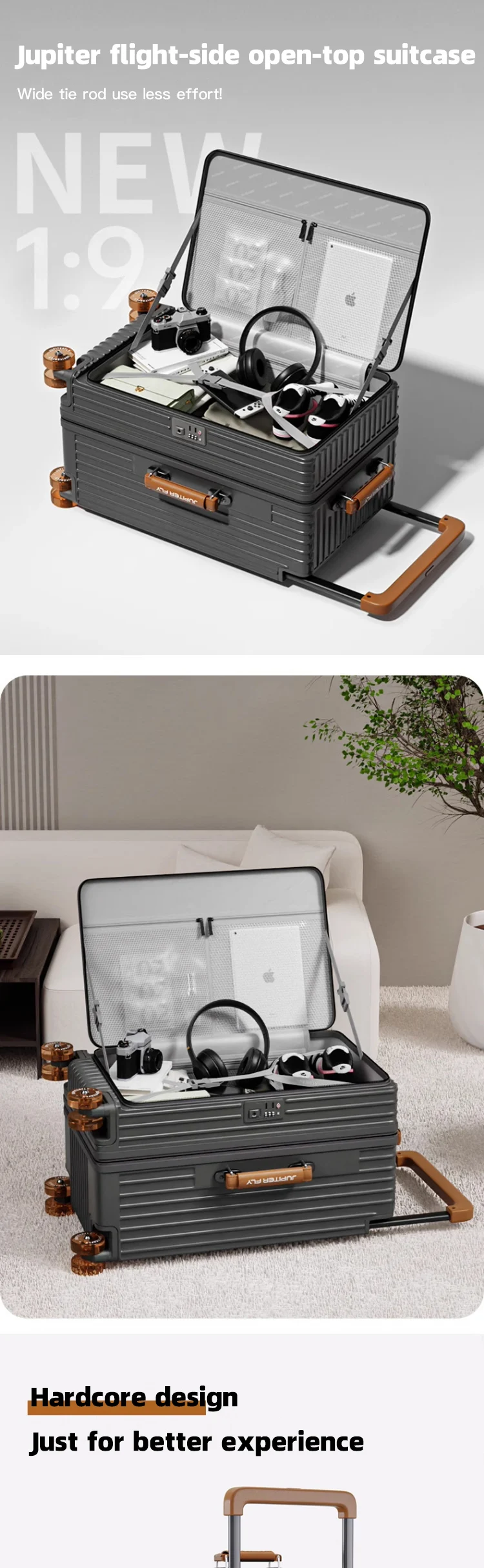 Pi1261 MUXING Wide Trolley Luggage Front Opening Multi-Functional Women 20-Inch Small Lightweight Boarding Box 24-Inch Men’s Suitcase