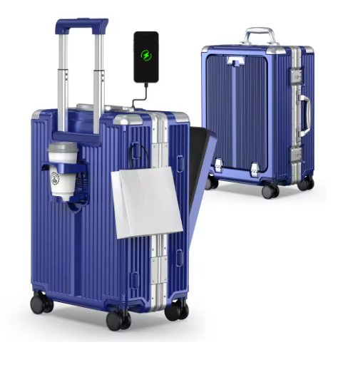 Pi1276 Airline Approved 22 inch Carry On Luggage,Aluminum Framed Carry On Suitcase with Front Open Laptop Compartment/Pocket