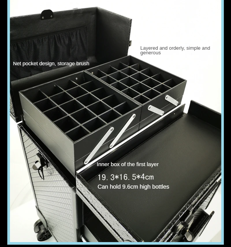 Pi1279 Luxury Cosmetic Box Large Capacity Suitcae Embroidery Toolbox Multilayer Professional Trolley Makeup travel rolling luggage