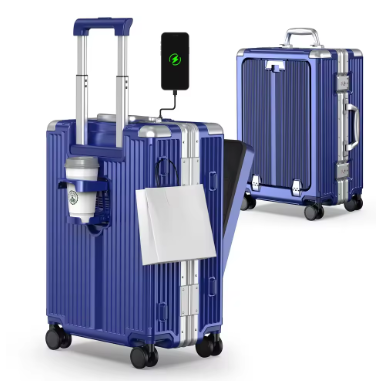 Pi1284 Airline Approved 22 inch Carry On Luggage,Aluminum Framed Carry On Suitcase with Front Open Laptop Compartment/Pocket