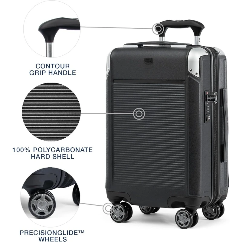 Pi1288 Platinum Elite Hardside Expandable Carry on Luggage Polycarbonate Suitcase, Shadow Black, Compact Carry on 20-Inch