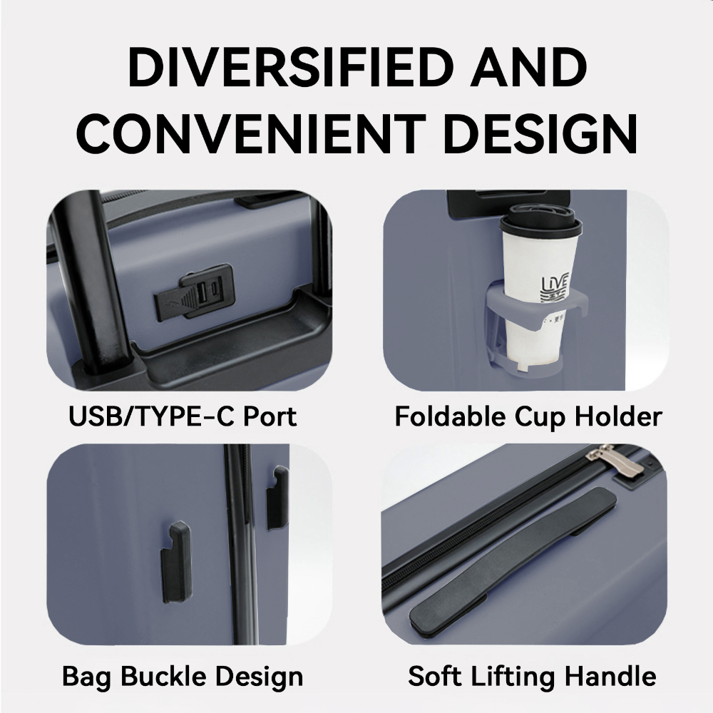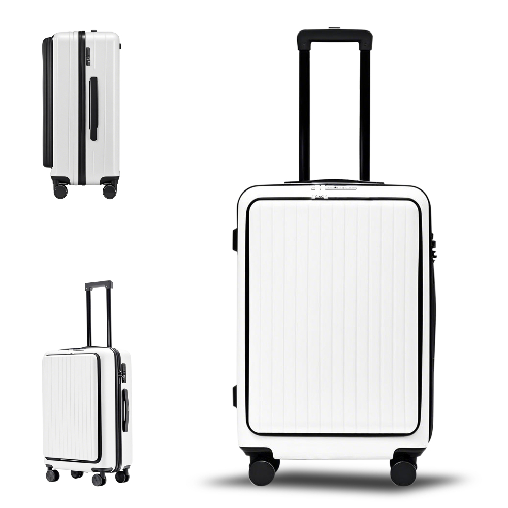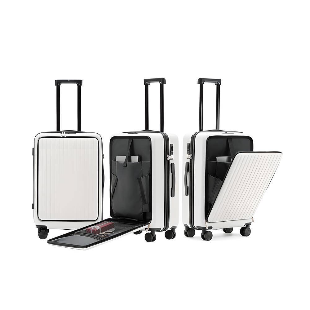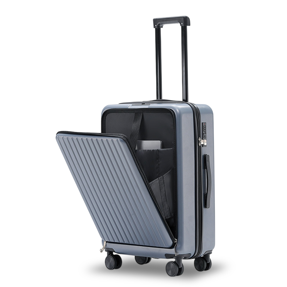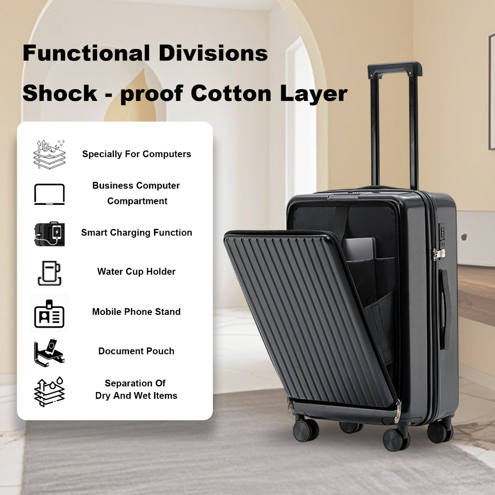 Pi1301 Password Roller Luggage Front Open Design Suitcase Metal Handle Rod With Phone Holder Cup Holder Bag Hook For Travel Boarding