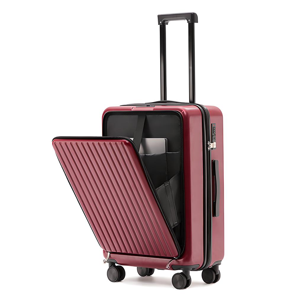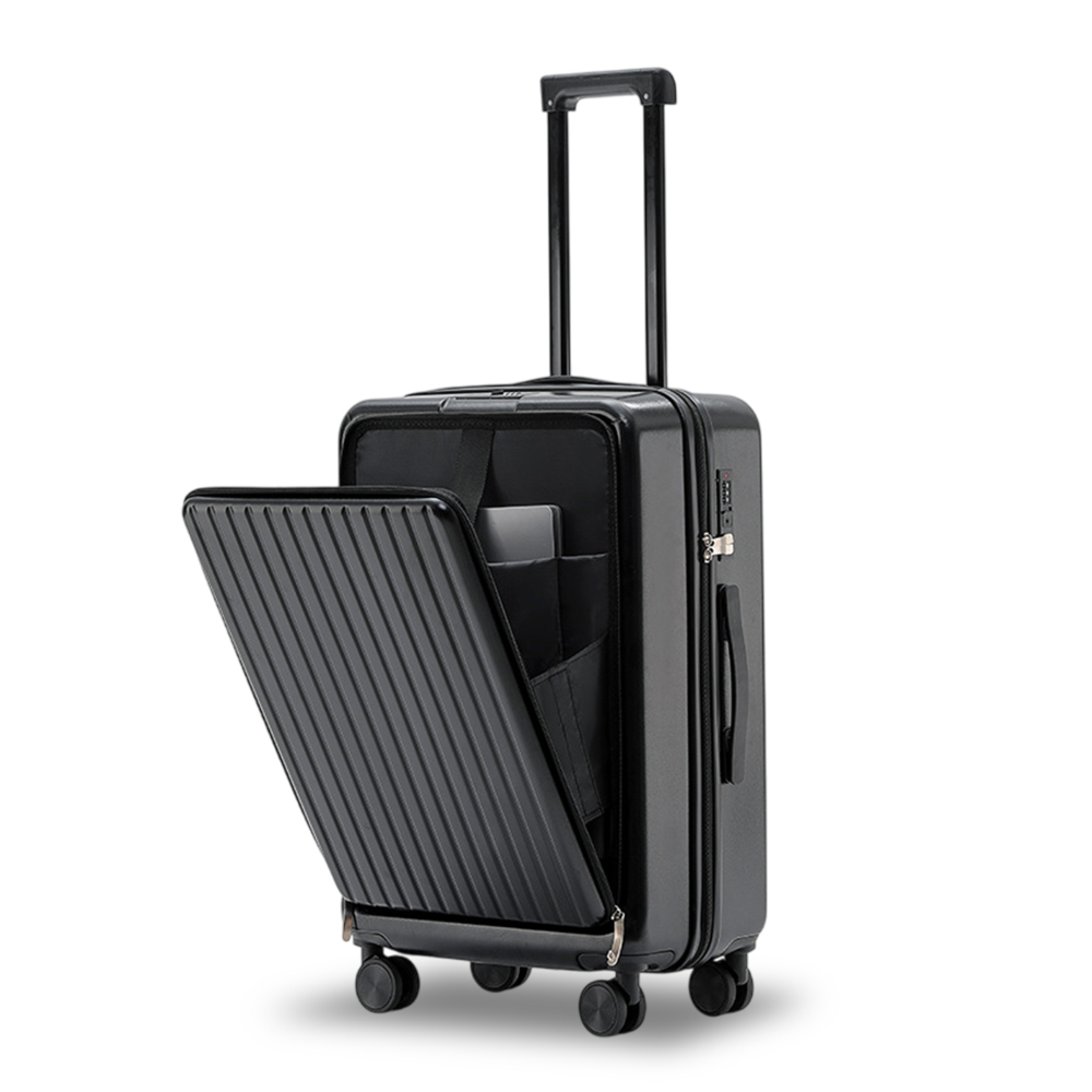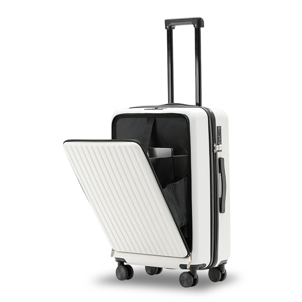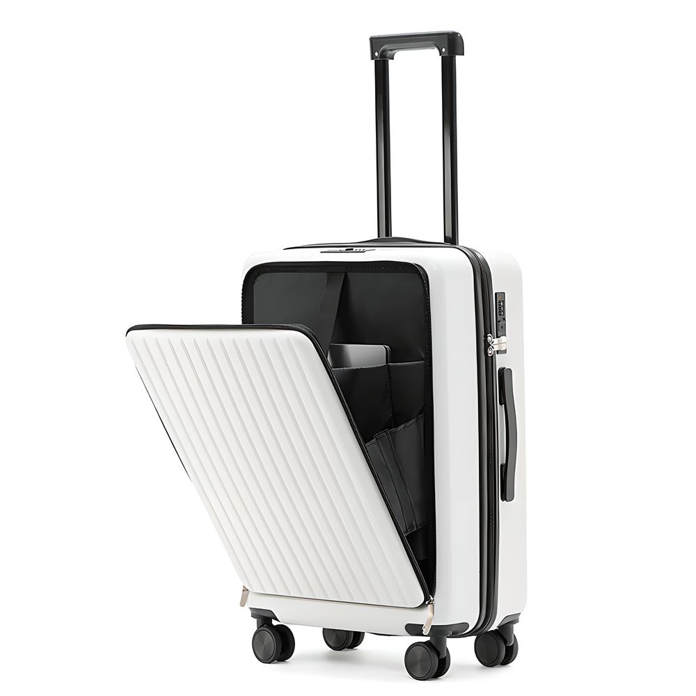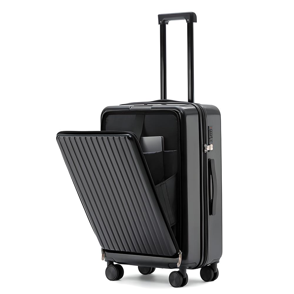 Pi1301 Password Roller Luggage Front Open Design Suitcase Metal Handle Rod With Phone Holder Cup Holder Bag Hook For Travel Boarding