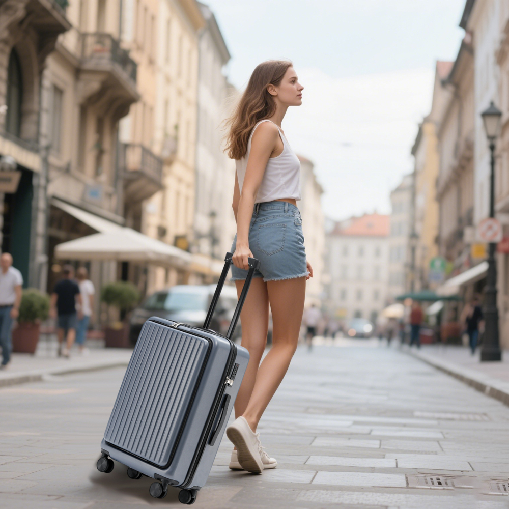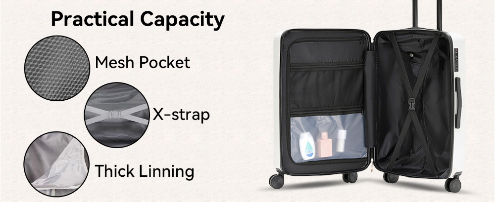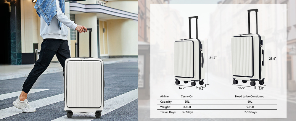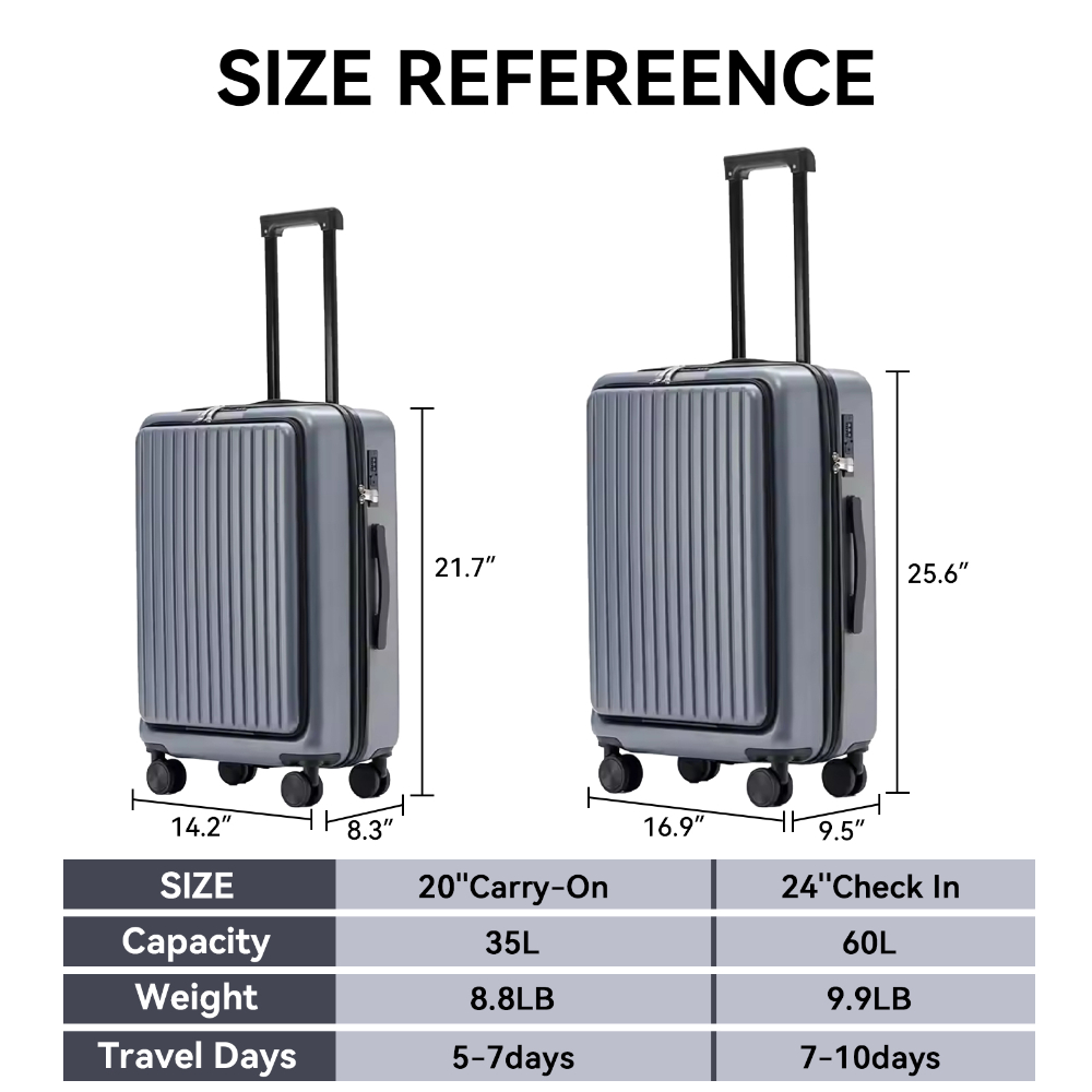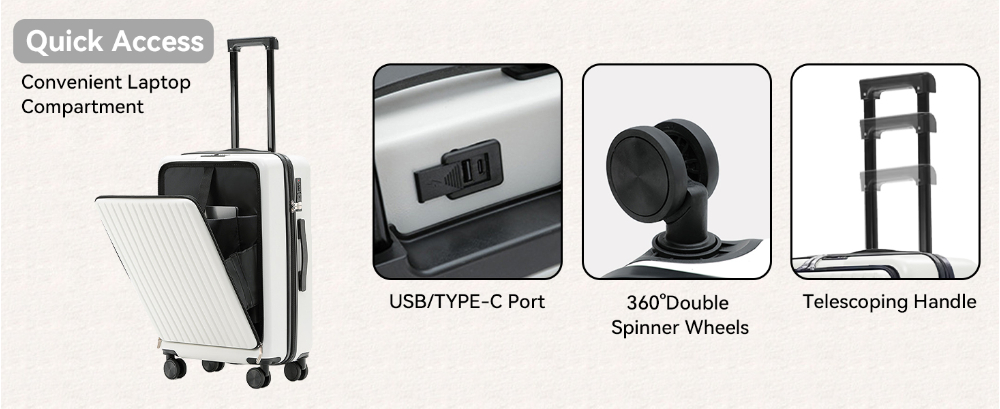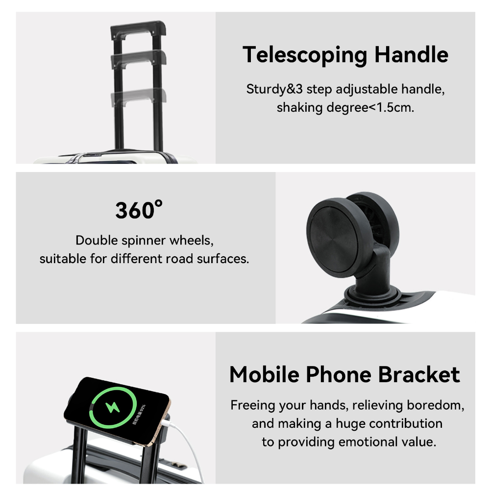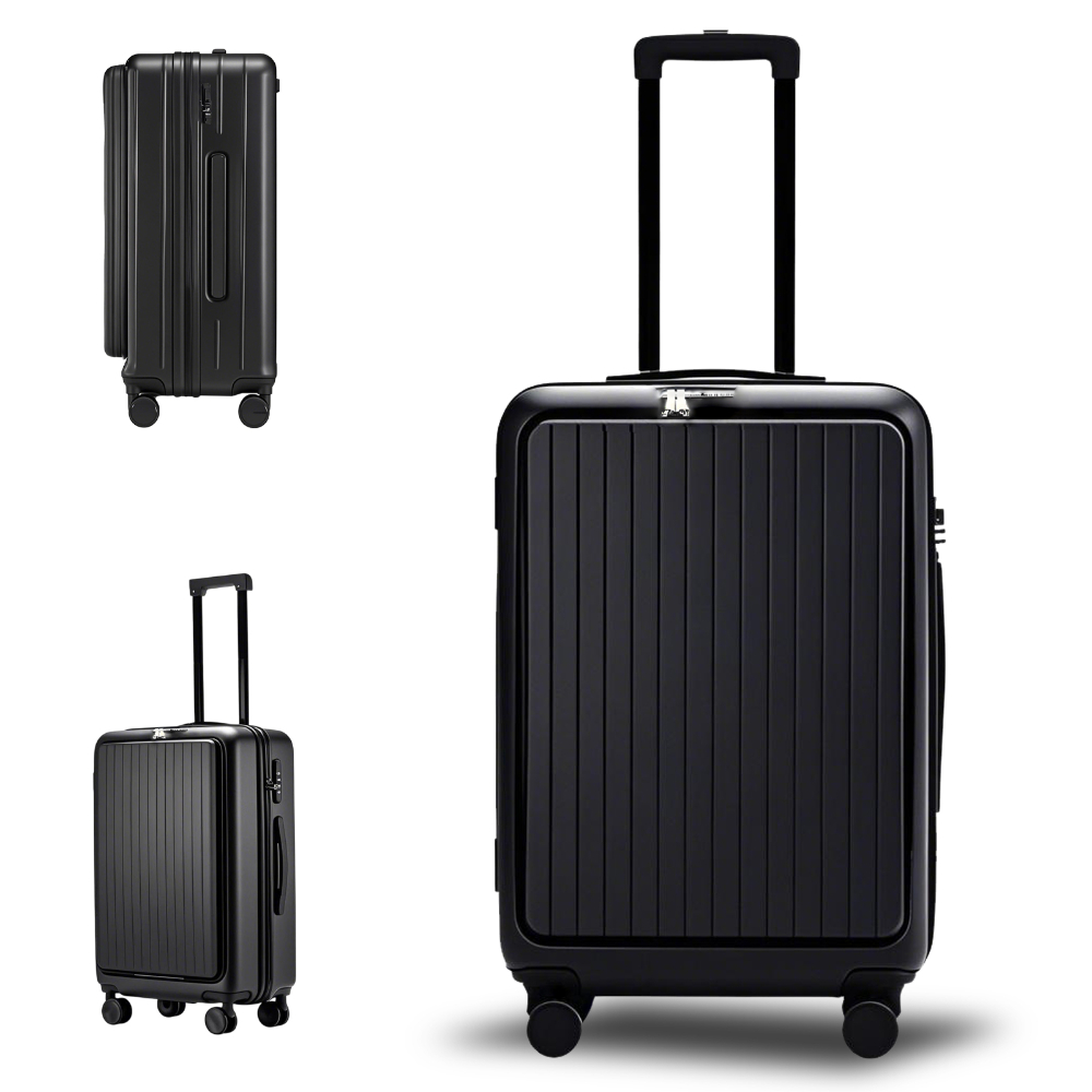 Pi1301 Password Roller Luggage Front Open Design Suitcase Metal Handle Rod With Phone Holder Cup Holder Bag Hook For Travel Boarding
