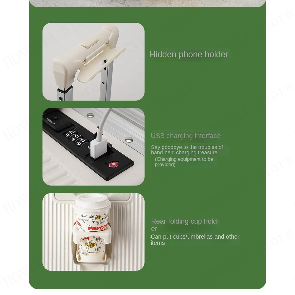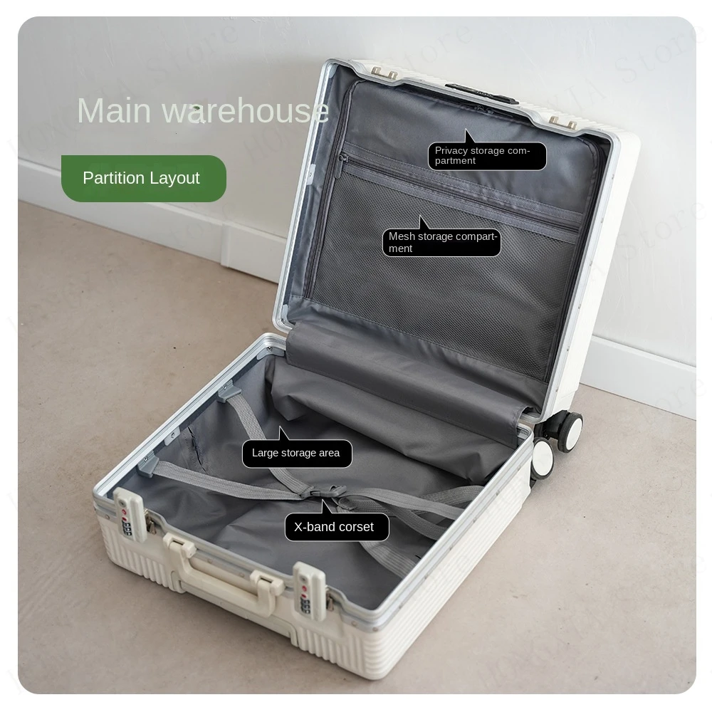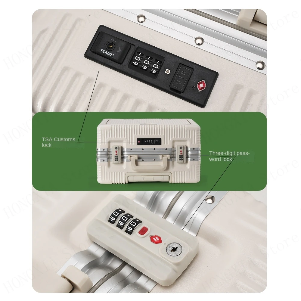 Pi1326 Luggage with USB Front Opening Suitcase PC Aluminum Frame Password Trolley Case 18 Inch Suitcase Trip Cabin Suitcases on Wheels