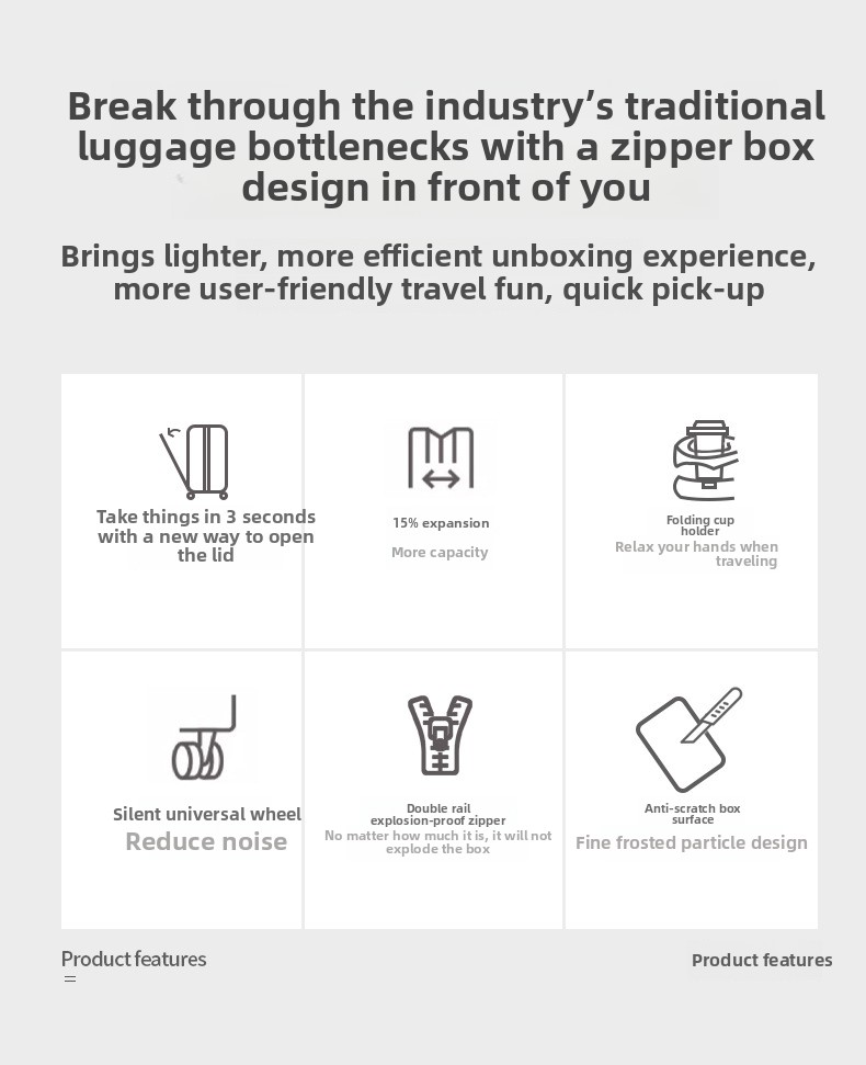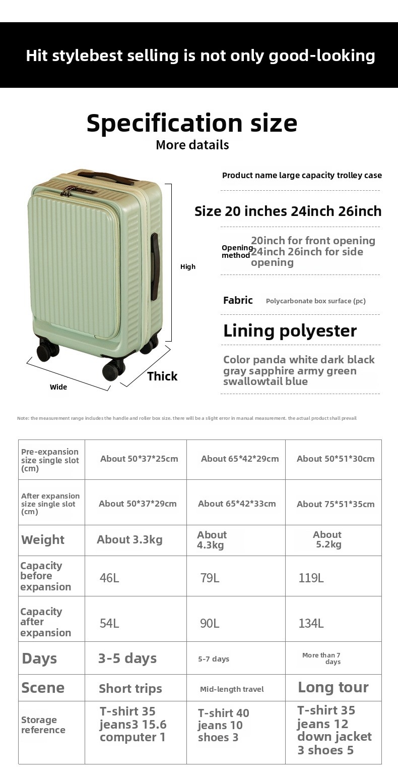 Pi1331 COLENARA ABS+PC Suitcase Front Opening Boarding Case Laptop Trolley Case Multifunctional 20″24″26 Inch Women’s Zipper Luggage