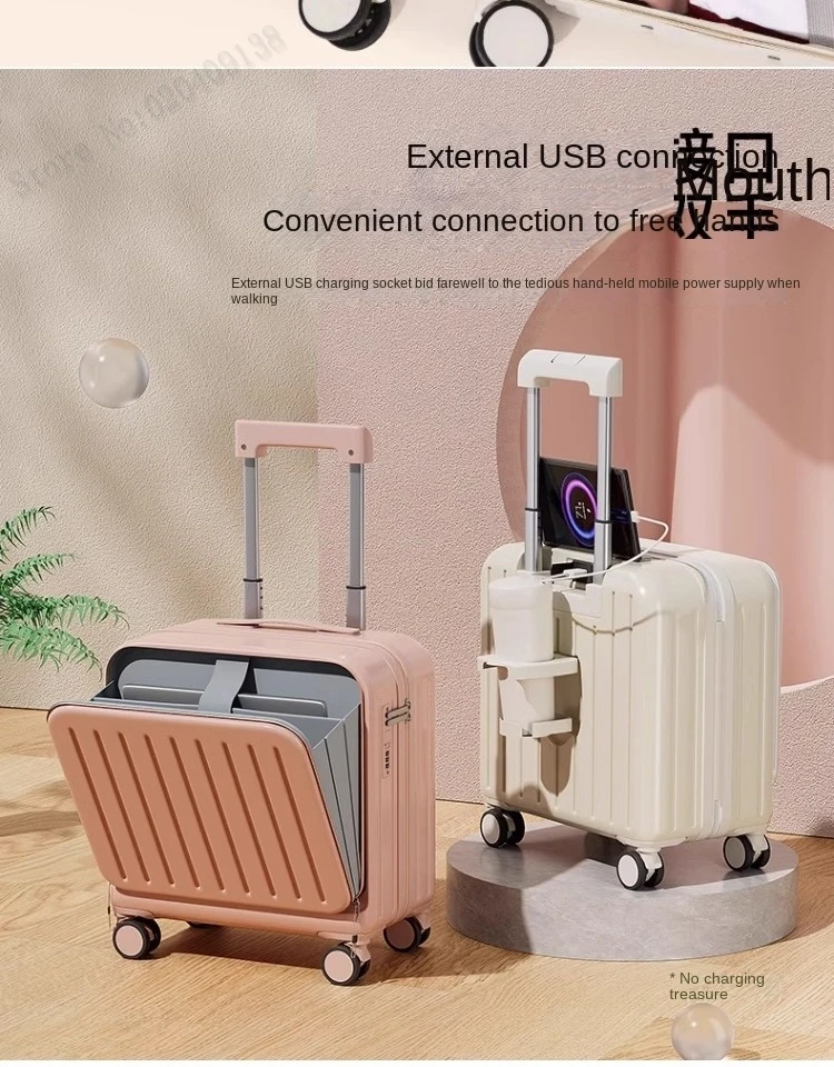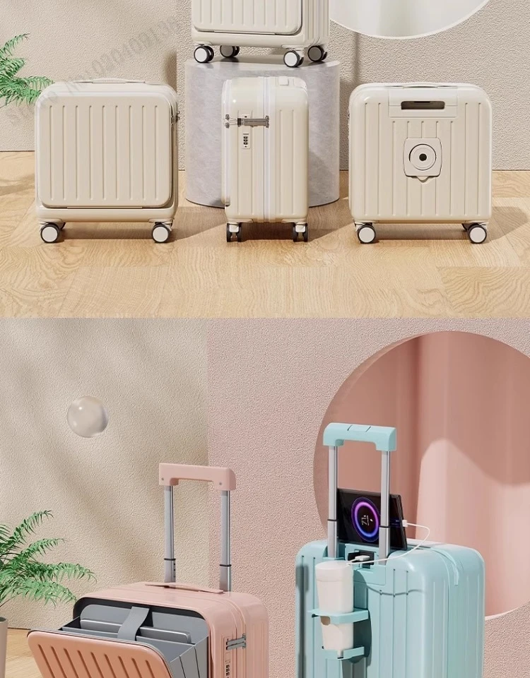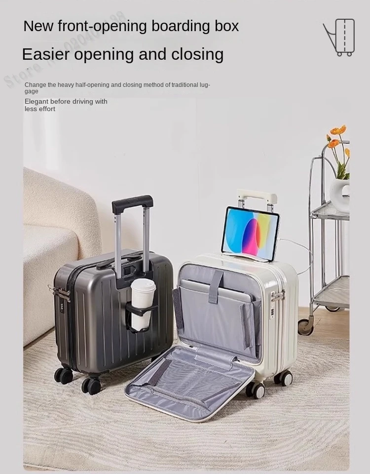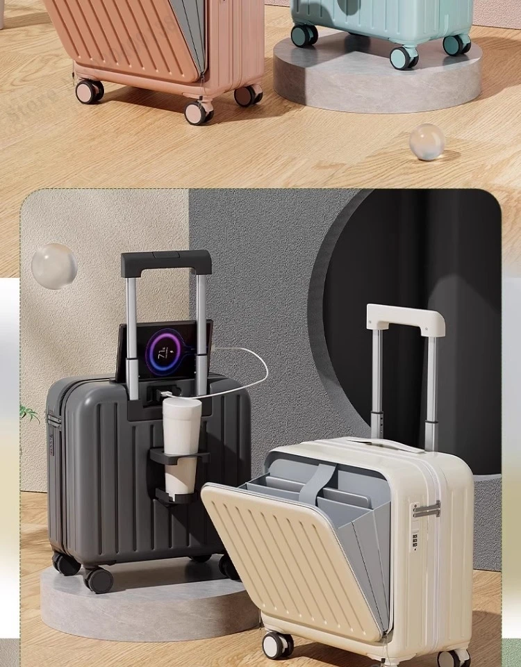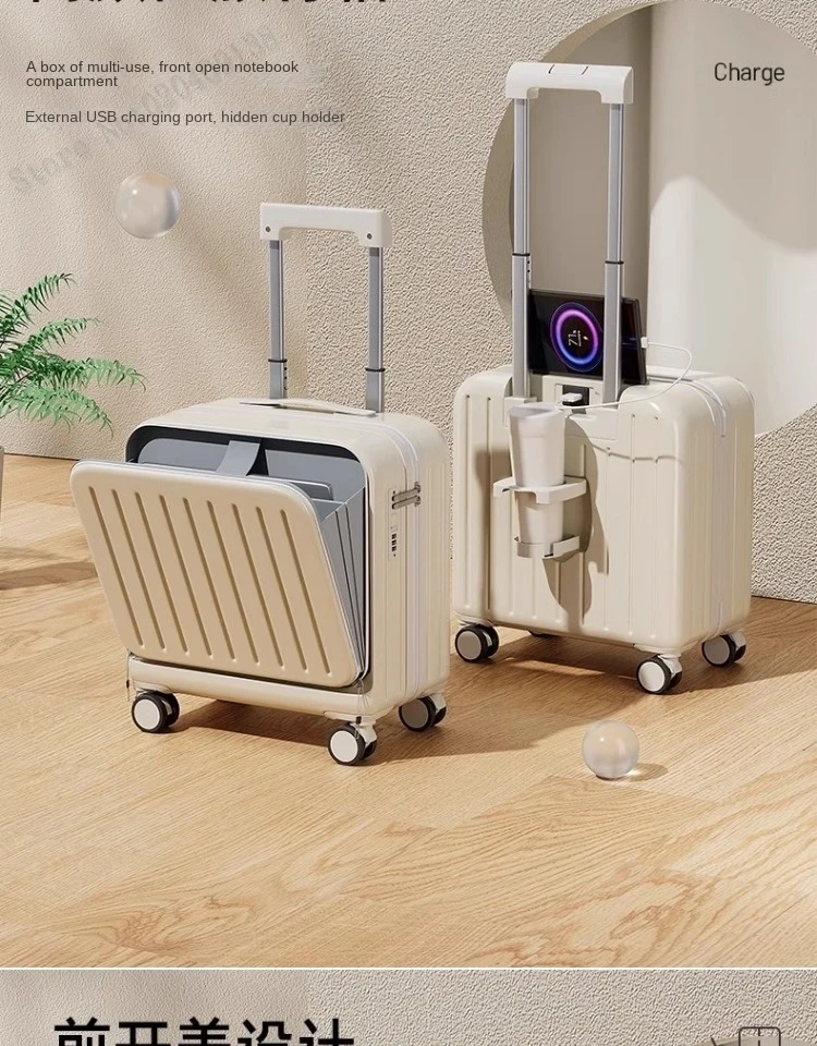 Pi1380 KO-KU Carry-on Suitcase Front Opening 18 Inch Boarding Box Cup Holder USB Interface Trolley Case Password Luggage 20 inch